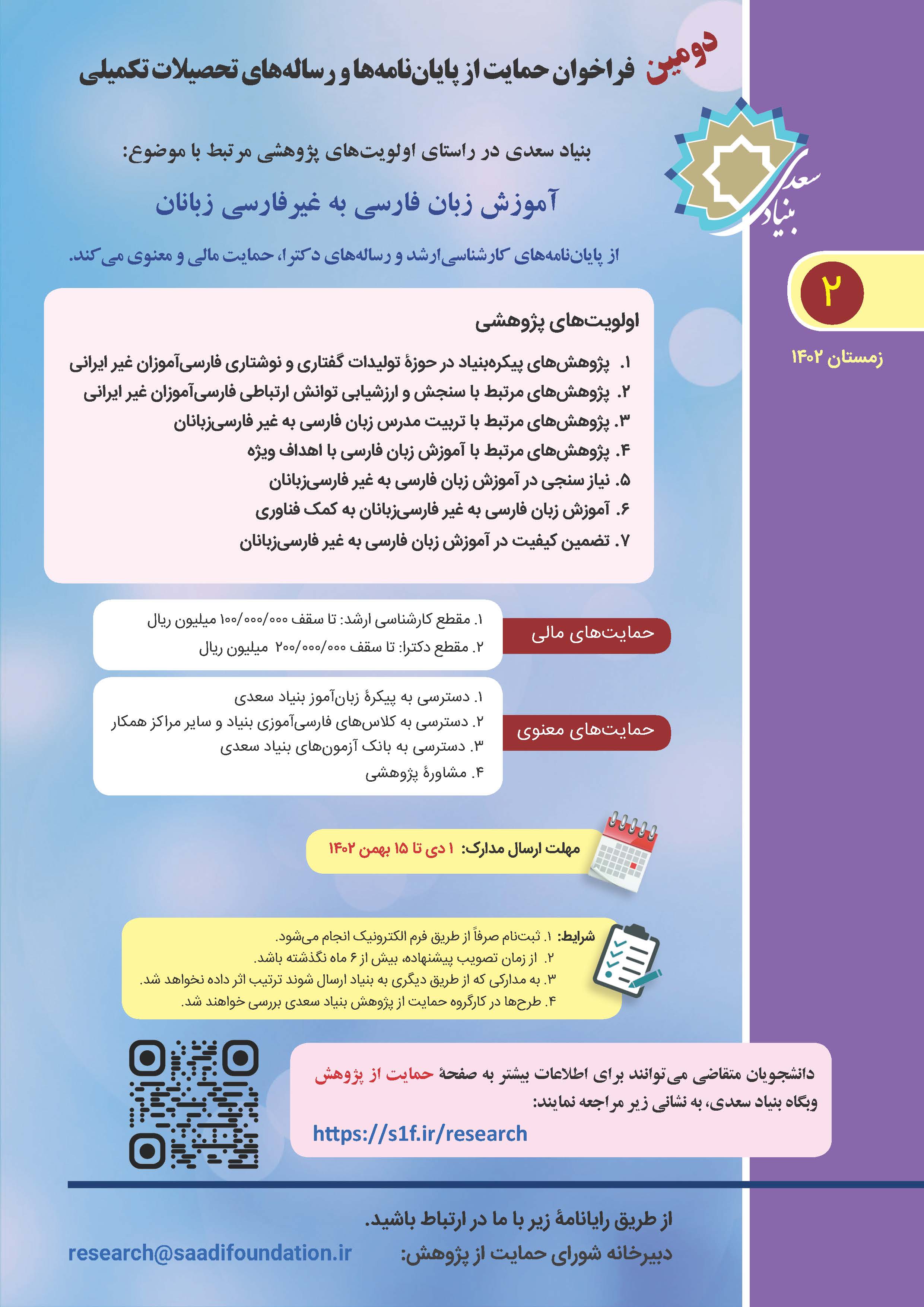 أمانة مجلس دعم البحوث : research@saadifoundation.ir