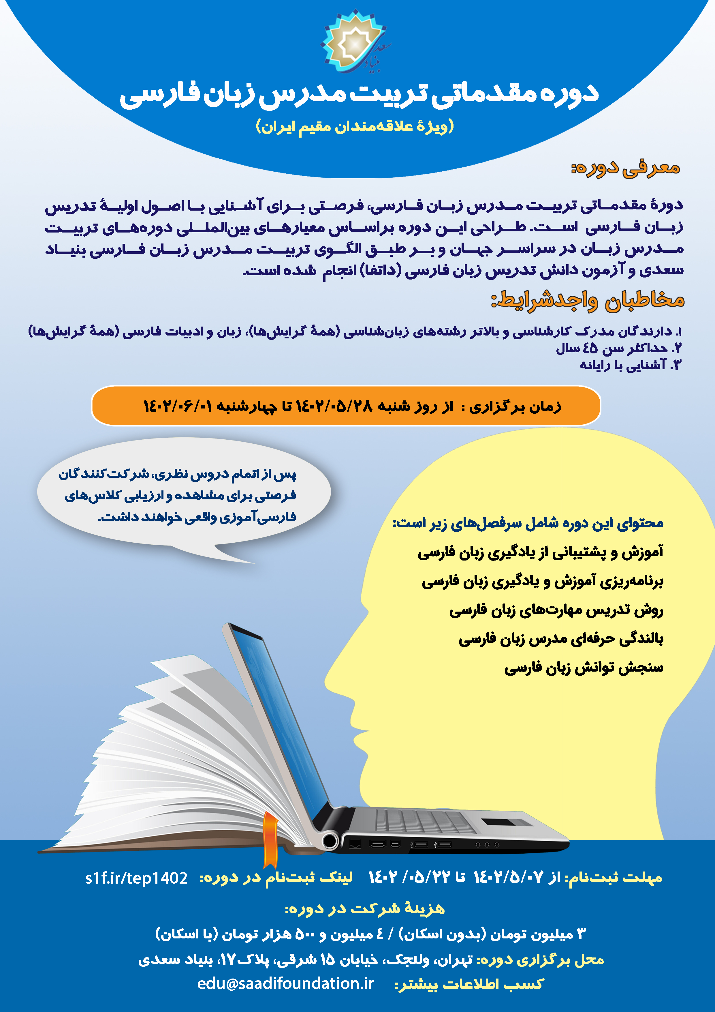 تمديد مهلة التسجيل في الدورة الافتراضية لتعليم اللغة الفارسية لغير الناطقين بها