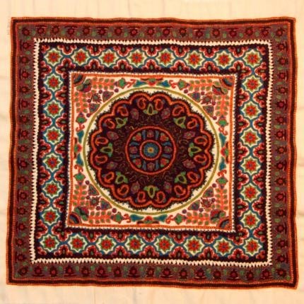 The other names of pateh needlework are Selsele needlework or Fateh needlework. The oldest piece of pateh, which is now available, is related to Farajollah Kermani, and then, the cover of the tomb of Shah Nematollah in Mahan, which dates back to 1285 AH. Pateh is a needlework that usually covers most of the fabric parts by the seams of Alwan.