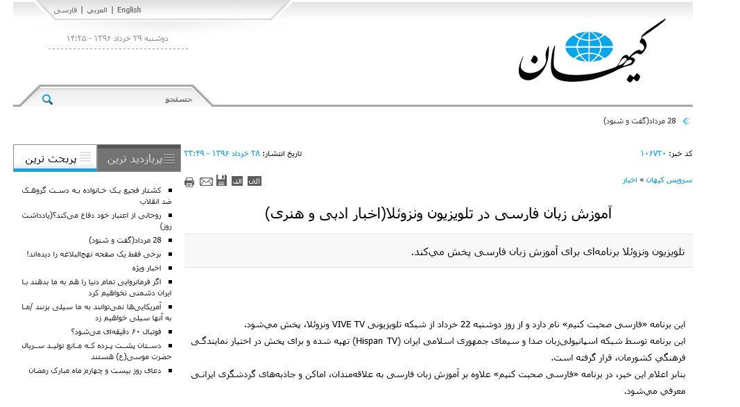 تلویزیون ونزوئلا برنامهای برای آموزش زبان فارسی پخش میکند.