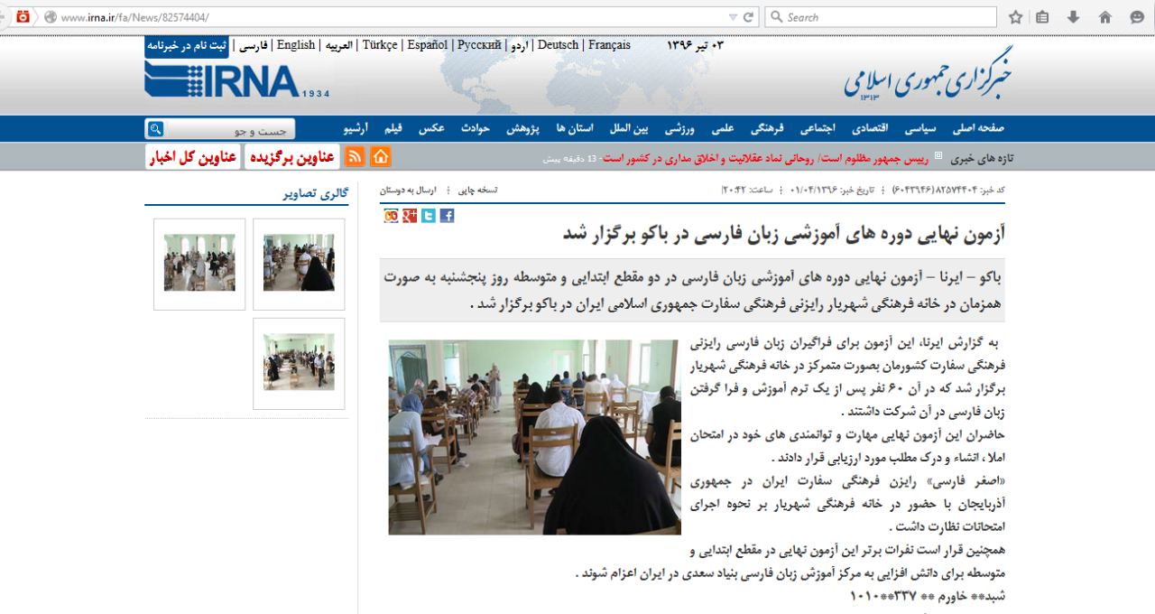 آزمون نهایی دوره های آموزشی زبان فارسی در باکو برگزار شد