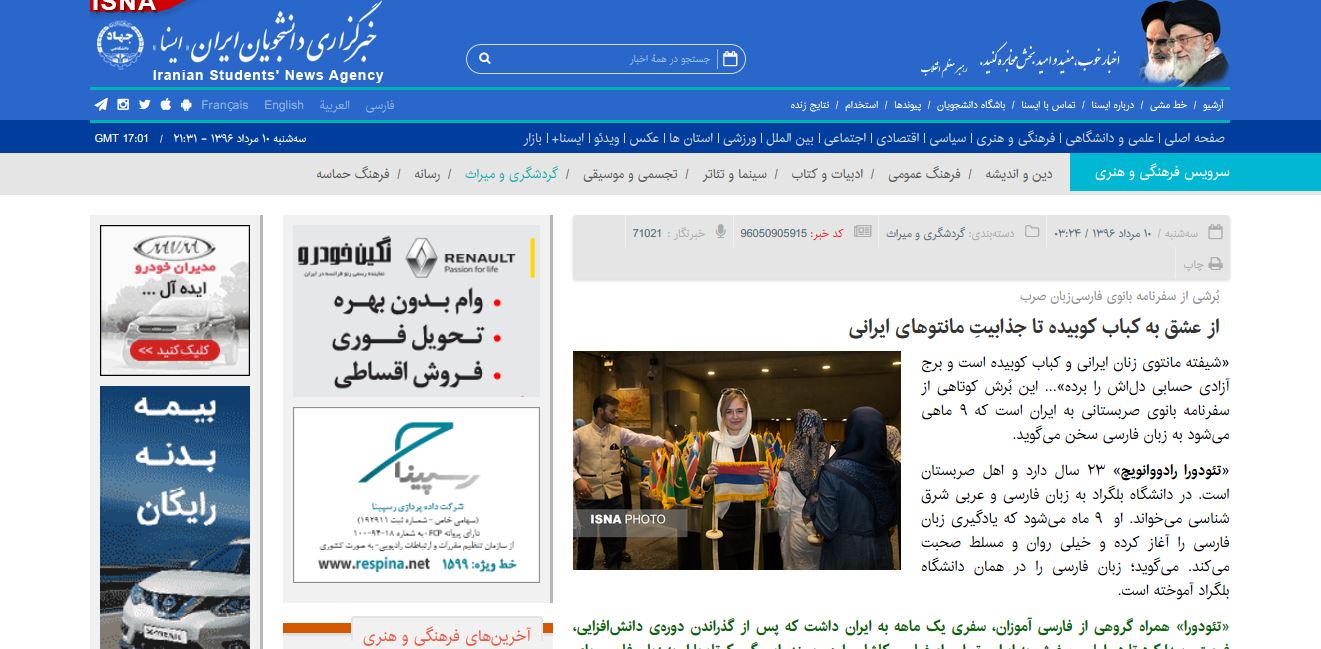 «شیفته مانتوی زنان ایرانی و کباب کوبیده است و برج آزادی حسابی دلاش را برده»... این بُرش کوتاهی از سفرنامه بانوی صربستانی به ایران است که ۹ ماهی میشود به زبان فارسی سخن میگوید.