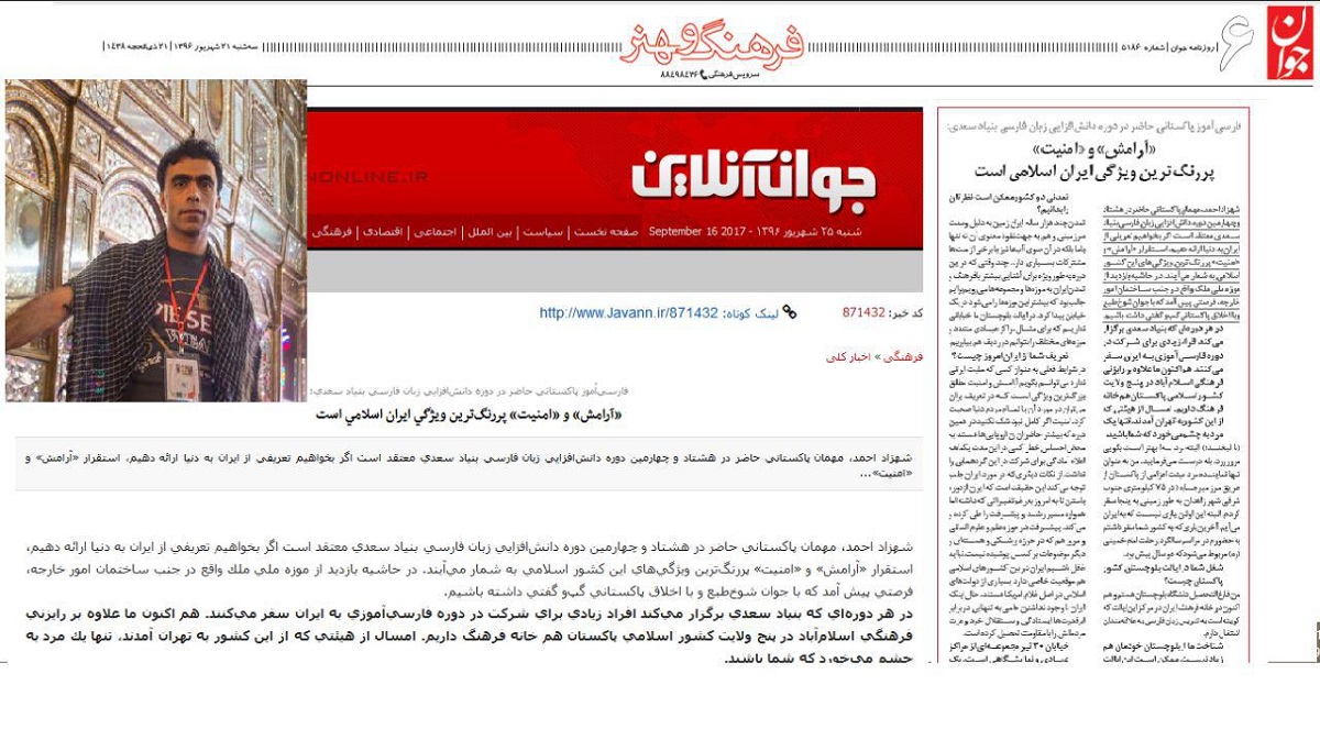 من فارغالتحصیل دانشگاه بلوچستان هستم و هم اکنون در خانه فرهنگ ایران در مرکز این ایالت که کویته است به تدریس زبان فارسی به علاقهمندان اشتغال دارم.