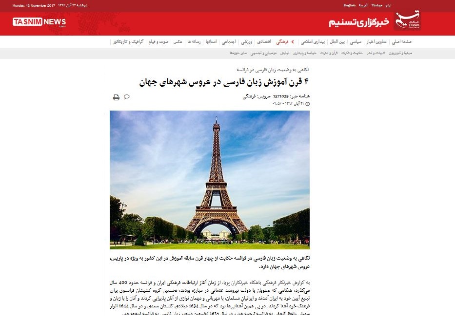 نگاهی به وضعیت زبان فارسی در فرانسه حکایت از چهار قرن سابقه آموزش در این کشور به ویژه در پاریس، عروس شهرهای جهان دارد.