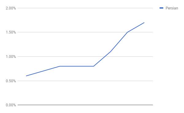 زبان فارسی حدفاصل سالهای ۲۰۱۱ تا ۲۰۱۷ سهم خود را از ۰.۶٪ به ۱.۷٪ افزایش داده است.