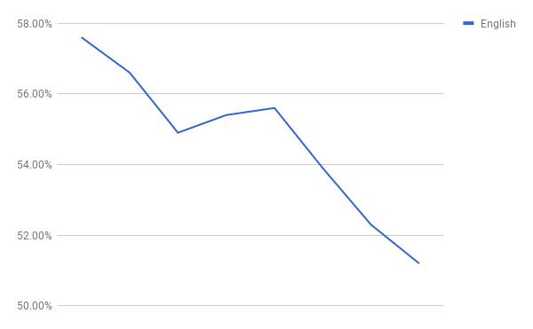 سهم زبان انگلیسی در وب از ۲۰۱۱ تا ۲۰۱۷