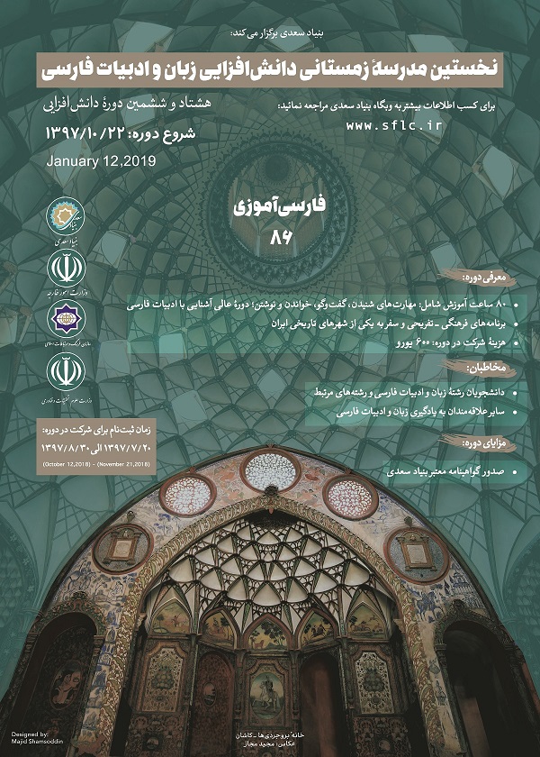هشتاد و ششمین دوره دانش افزایی زبان فارسی بنیاد سعدی از 22 دی ماه آغاز می شود و شرکت کنندگان طی آن، مهارت های نوشتن، خواندن، شنیدن و گفت و گوی فارسی خود را تقویت می کنند. شرکت کنندگان سطح های بالاتر نیز علاوه بر آن، دوره عالی آشنایی با ادبیات فارسی را فرا می گیرند.