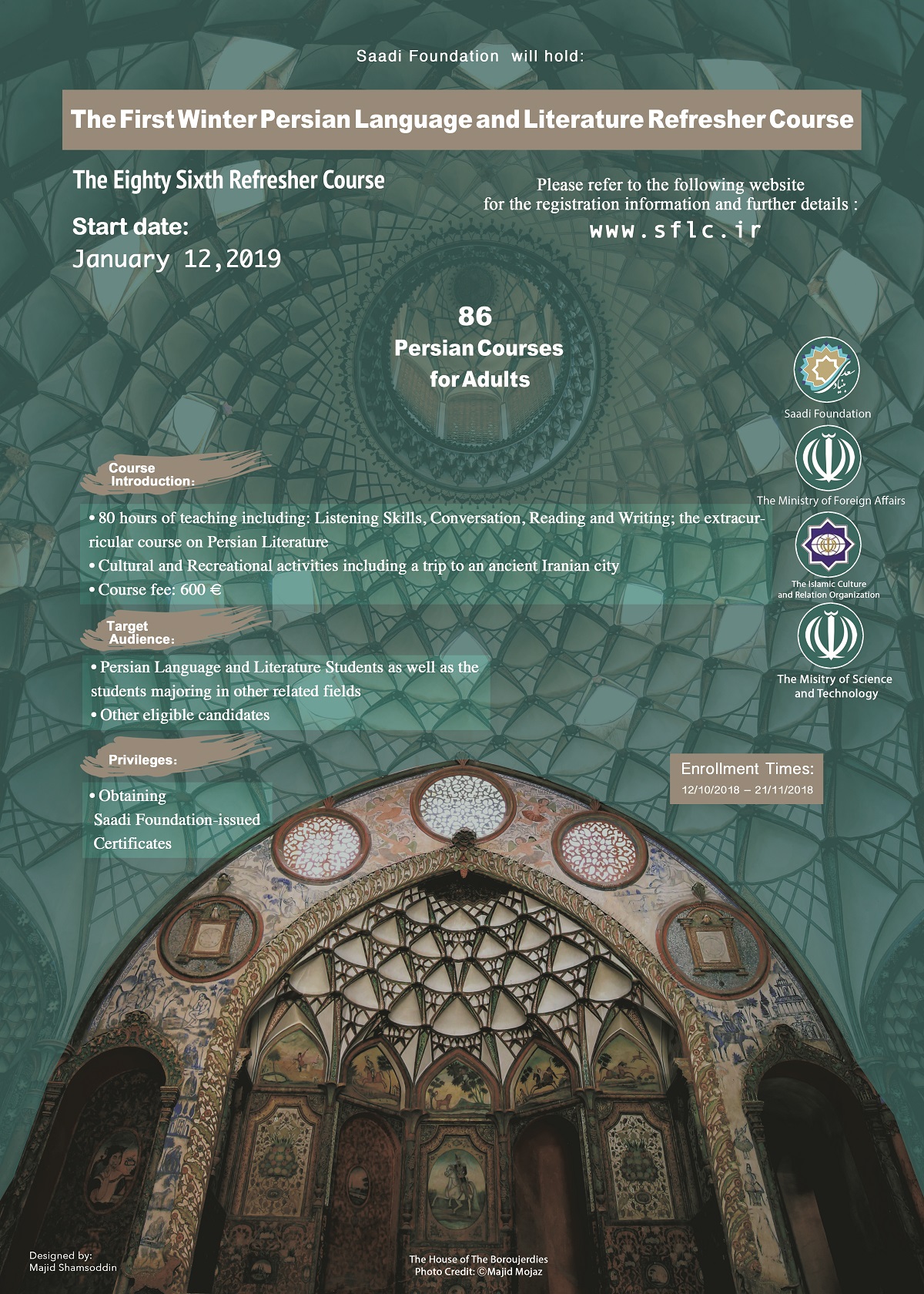 به گزارش روابط عمومی بنیاد سعدی، ثبت نام در هشتاد و ششمین دوره دانش افزایی زبان و ادبیات فارسی، که در دی ماه برگزار می شود و عنوان نخستین مدرسه زمستانی دانش افزایی زبان و ادبیات فارسی را به خود اختصاص داده است، تا 30 آبان ماه ادامه دارد.
