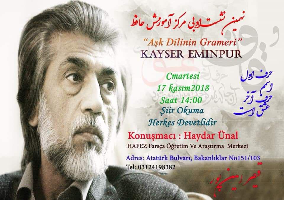 در این نشست ادبی، حیدر اونال نویسنده ترکیه ای در خصوص کتاب شعر «دستور زبان عشق» از شاعر فقید قیصر امین پور، که به ترکی استانبولی ترجمه شده است، به سخنرانی پرداخت.