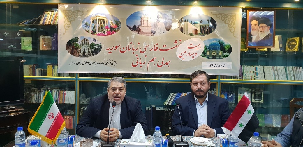 به گزارش روابط عمومی بنیاد سعدی، این نشست دوستانه با حضور تسخیری وابسته فرهنگی ایران، دکتر غزالی پور استاد زبان فارسی دانشگاه دمشق، ارمکان و حسن مصری استادان زبان فارسی در رایزنی فرهنگی و دوستداران زبان فارسی و فارسی آموزان سوری و غیر سوری، برگزار شد.