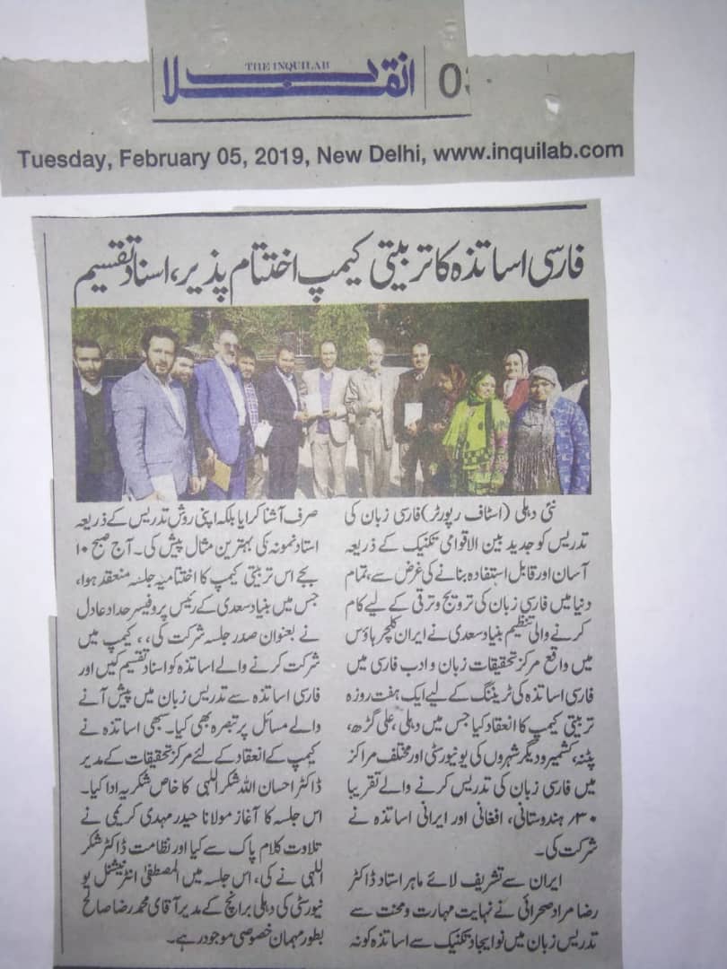 اولین دوره تربیت مدرس زبان فارسی در دهلی نو با حضور رییس بنیاد سعدی پایان یافت.