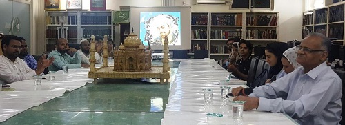 در این جلسه آقای دکتر چگنی، سفیر محترم جمهوری اسلامی ایران درهند، دکتر دهگاهی، رایزن فرهنگی جمهوری اسلامی ایران در هند و احسان الله شکراللهی، رییس مرکز تحقیقات زبان فارسی هند، حضور داشتند و مراسم در محل سالن اجتماعات مرکز میکروفیلم نور برگزار شد.