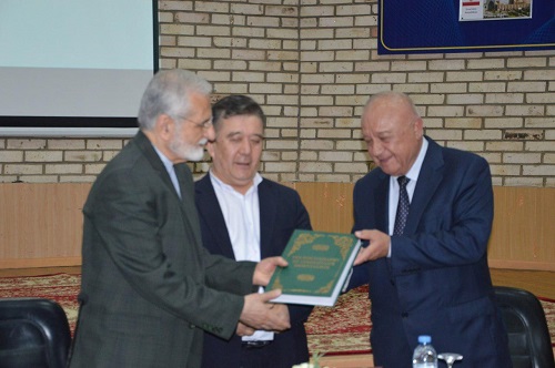 رییس دانشگاه خاورشناسی پروفسور منان اوف پس از خوشامدگویی، به بررسی همکاریهای علمی آموزشی دستگاههای ذیربط در جمهوری اسلامی ایران و دانشگاه خاورشناسی پرداخت و خاطر نشان کرد در یکسال گذشته علاوه بر اعزام تعدادی از اساتید و دانشجویان زبان فارسی این دانشگاه برای شرکت در دوره دانش افزایی به بنیاد سعدی، یک دوره آموزشی از سوی رایزنی فرهنگی سفارت جمهوری اسلامی ایران برای اساتید با دعوت یک استاد از ایران در دانشگاه خاورشناسی برگزار شده است.