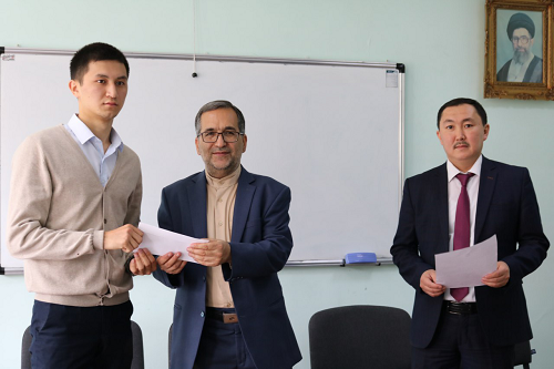 نورلان بیک بالتابایف، رئیس گروه کشورهای خاور میانه و نزدیک و مدیر گروه زبان فارسی دانشگاه نیز ضمن قدردانی از رایزنی فرهنگی بخاطر تلاش برای تامین برخی نیاز های آموزشی و کمک آموزشی دانشکده از دانشجویان خواست در یادگیری بهتر زبان فارسی کوشا باشند.