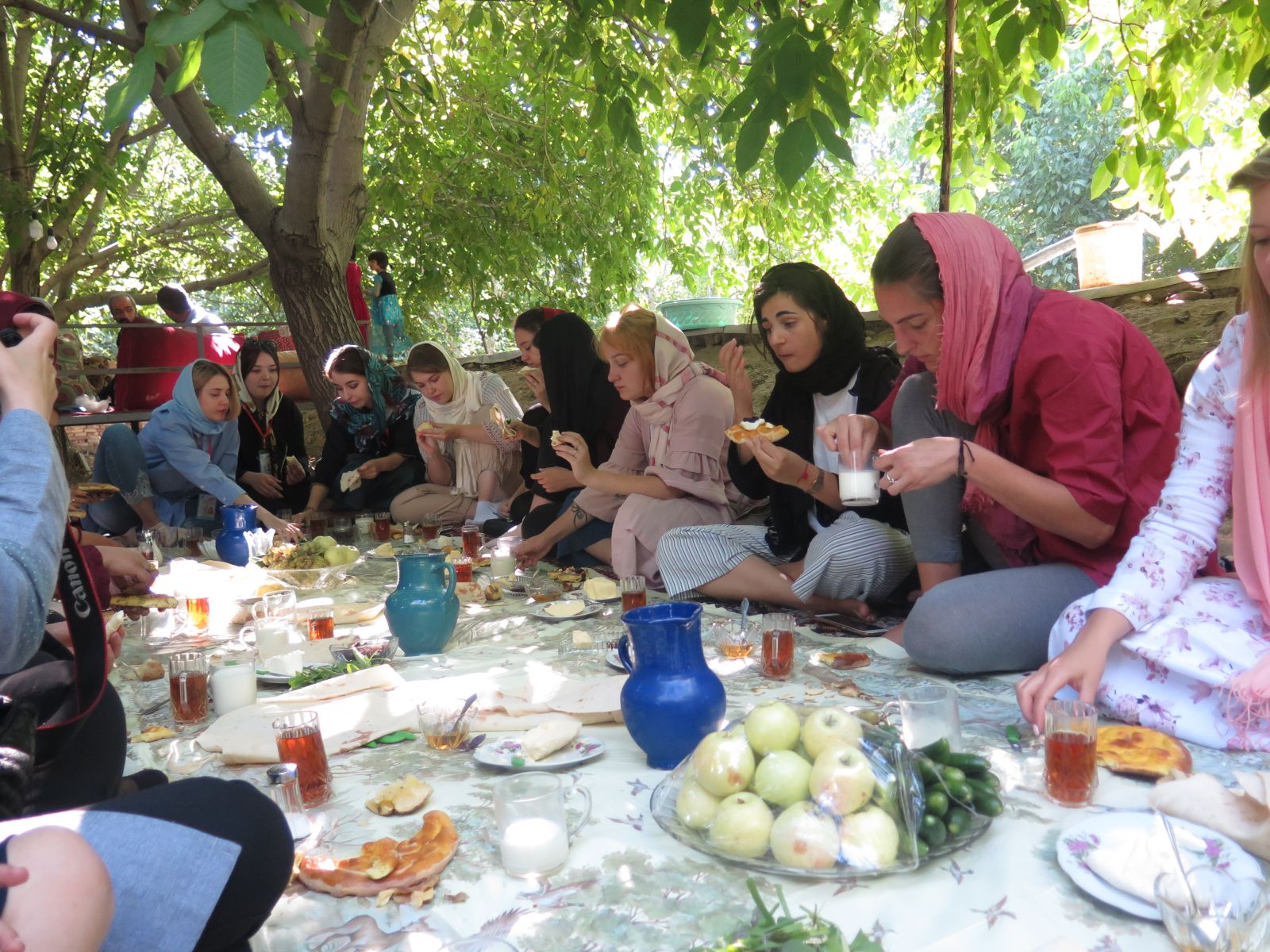 آخرین شبی که در همدان هستیم، مجالی پیش میآید تا چند دقیقهای میهمان دریا وکریستینا از آستراخان روسیه شویم و درباره مشترکات اجتماعی ایران و روسیه صحبتی داشته باشیم. کریستینای بیست ساله در دانشگاه ملی آستراخان زبان فارسی میخواند و به گفته خودش معلم زبان فارسی است. این سفر، دومین سفر او به ایران است و هشت ماه قبل هم به ایران آمده است. طبق گفته کریستینا دانشگاه آستراخان با دانشگاه گیلانتفاهمنامه همکاری امضا کردهاند و هر یک سال در میان دانشجویانی از روسیه به دانشگاه گیلان میآیند تا زبان فارسی یاد بگیرند. کریستینا که در این سفر زندگی چند هفتهای در تهران و آموزش اصولی و برنامهریزی شده زبان فارسی در بنیاد سعدی را تجربه کرده است، از دانشگاه گیلان نالان است و معتقد است در آنجا خیلی زبان فارسی نیاموخته است.