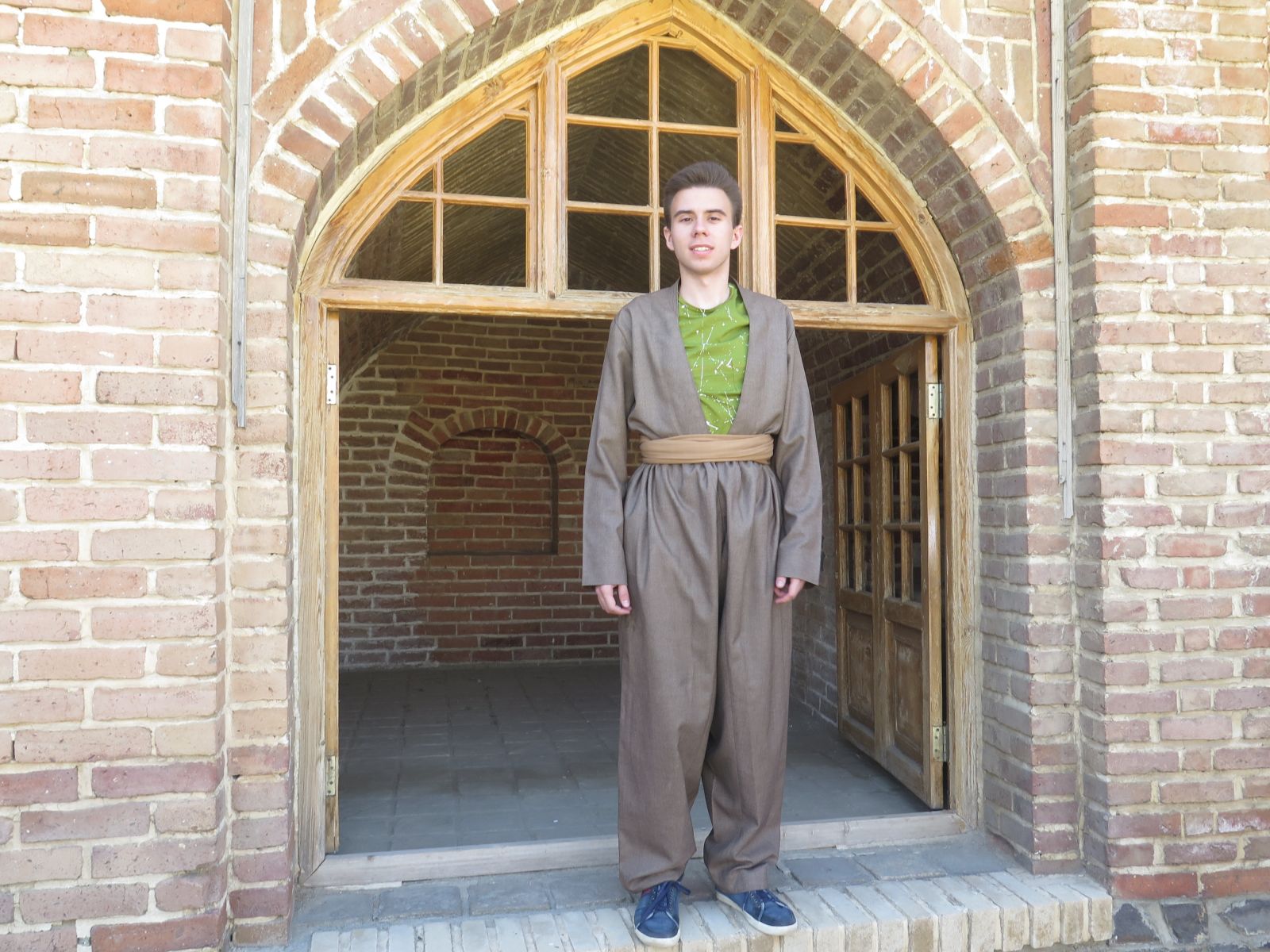 در همین حال که عدهای از دوستان مشغول پوشیدن لباس کردی و ثبت عکس با آنان هستند، ماتیای ایتالیایی را در گوشهای از کاروانسرا تنها میبینم و به سراغ او میروم. ماتیا اهل ونیز و دانشجوی دانشگاه بلونیا است.هشت سال پیش به همراه پدر و مادرش به ایران سفر کرده و شهرهای تهران، قم، اصفهان، شیراز و چند شهر دیگر ایران را دیده است. خاطره خوب سفرش به ایران، او را مشتاق یادگیری زبان فارسی میکند و همین امر دلیلی میشود تا پس از اتمام دوره کارشناسیاش، به دانشگاه بلونیا برود و تحصیل زبان و ادبیات فارسی را شروع کند.