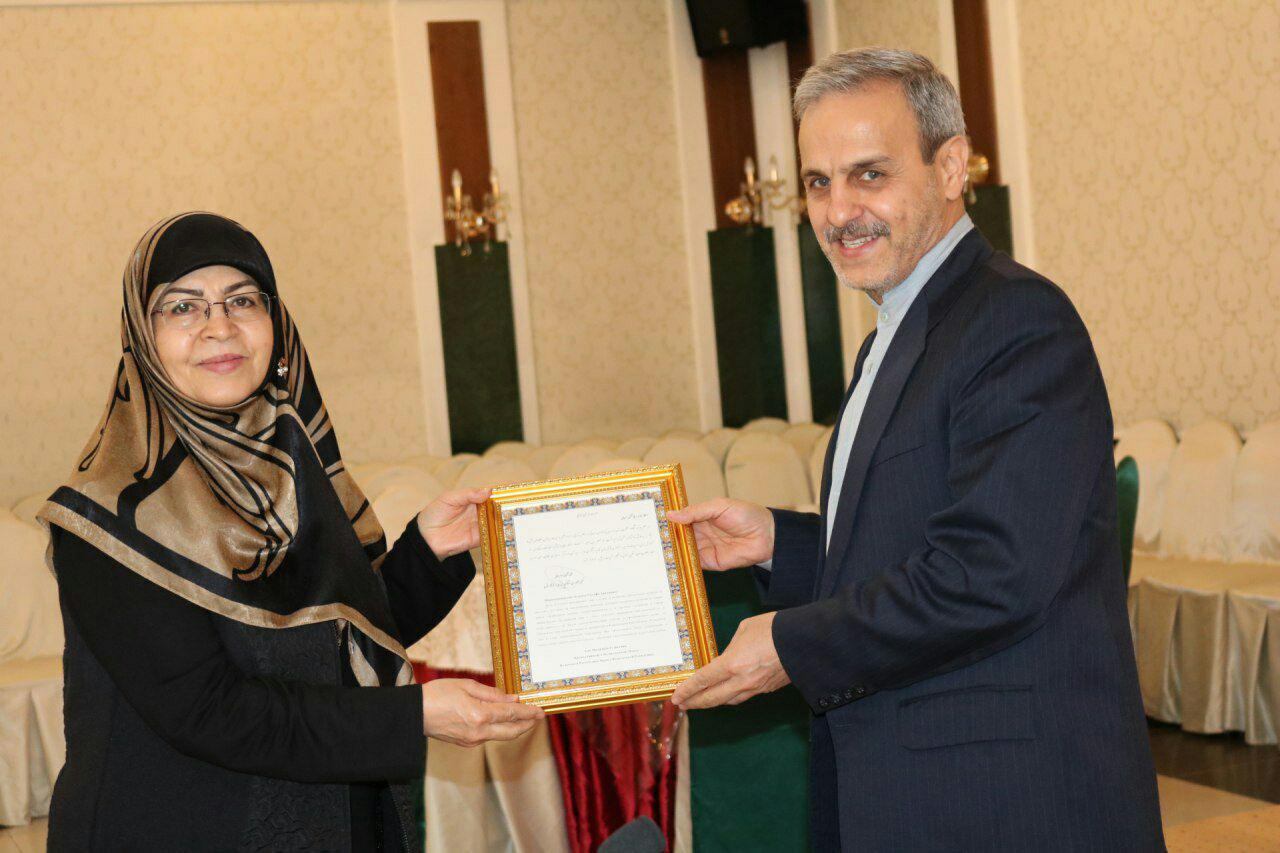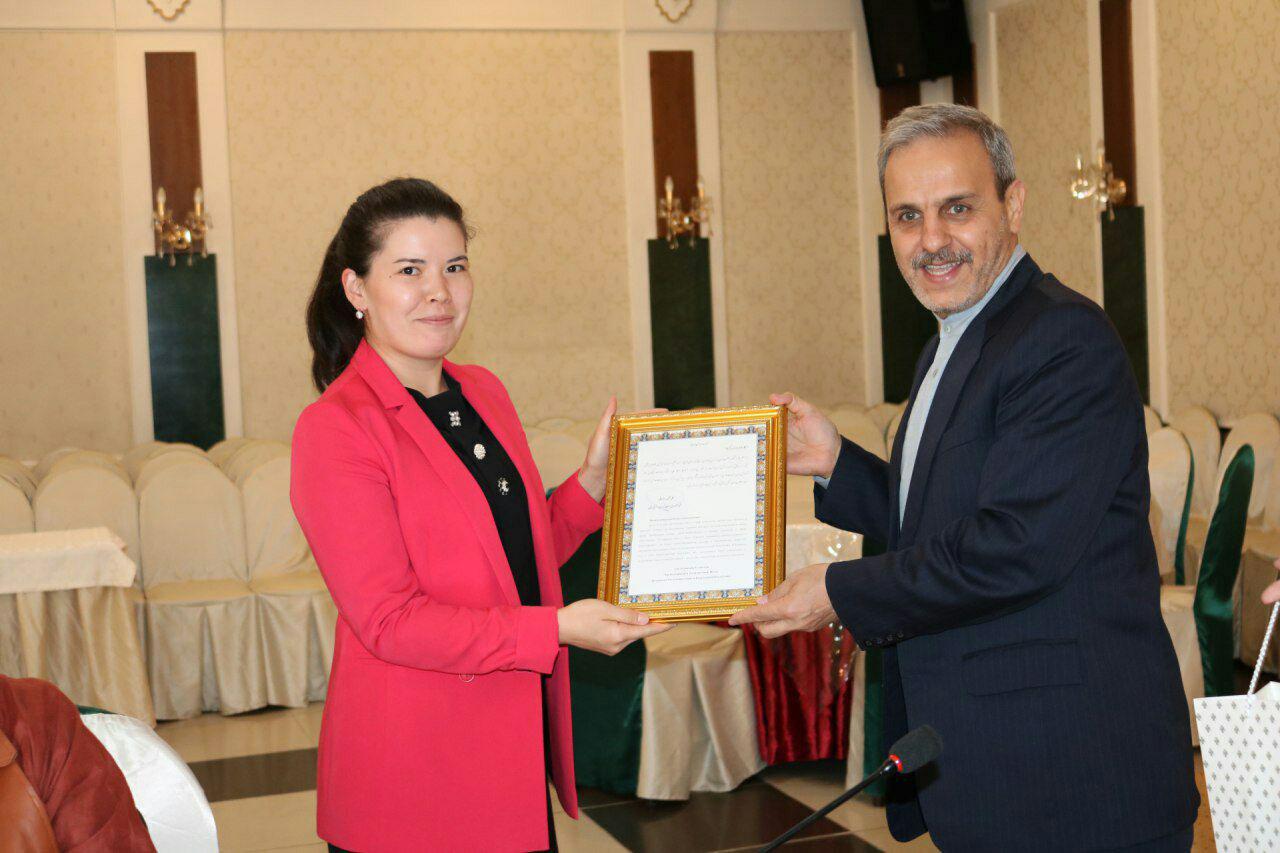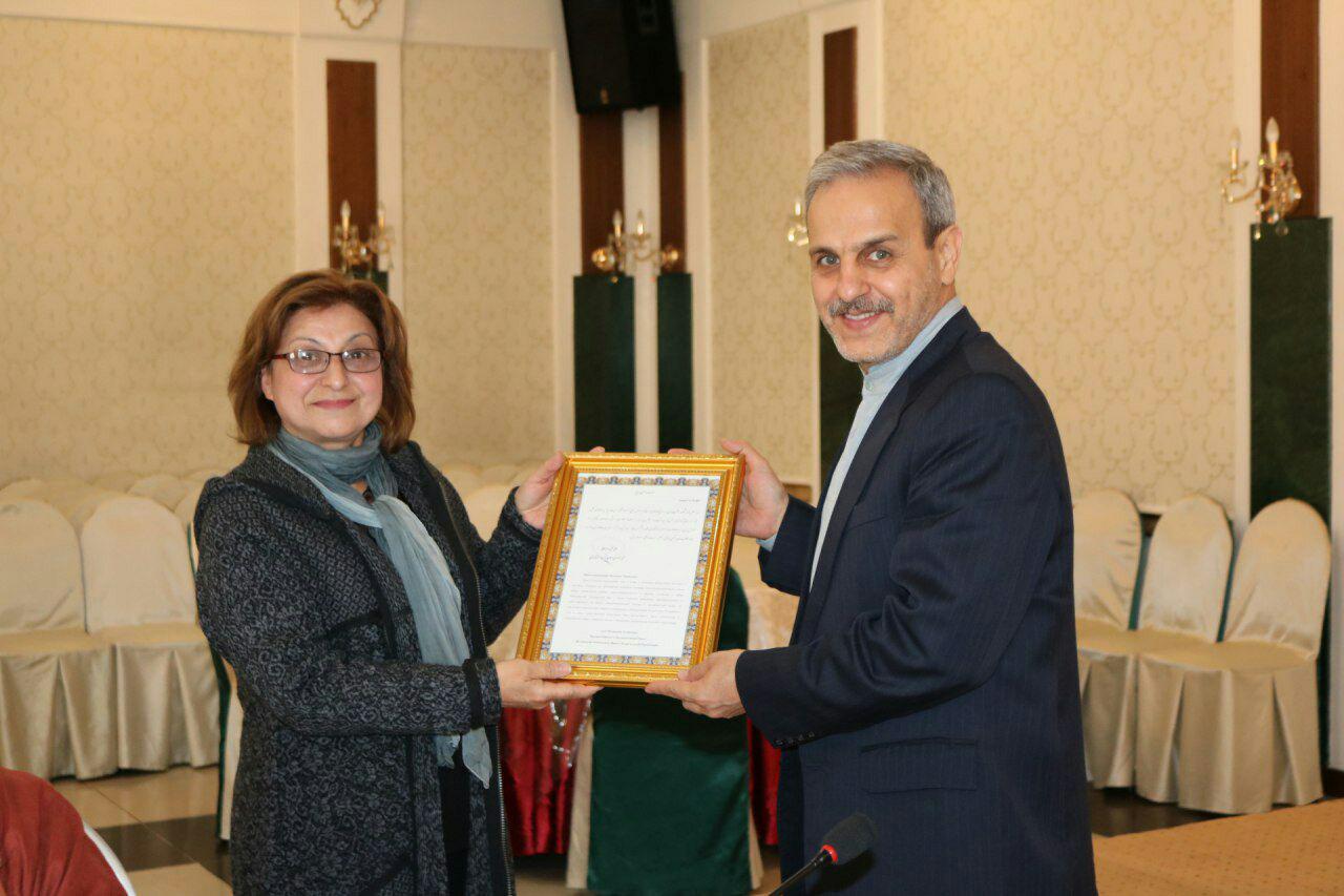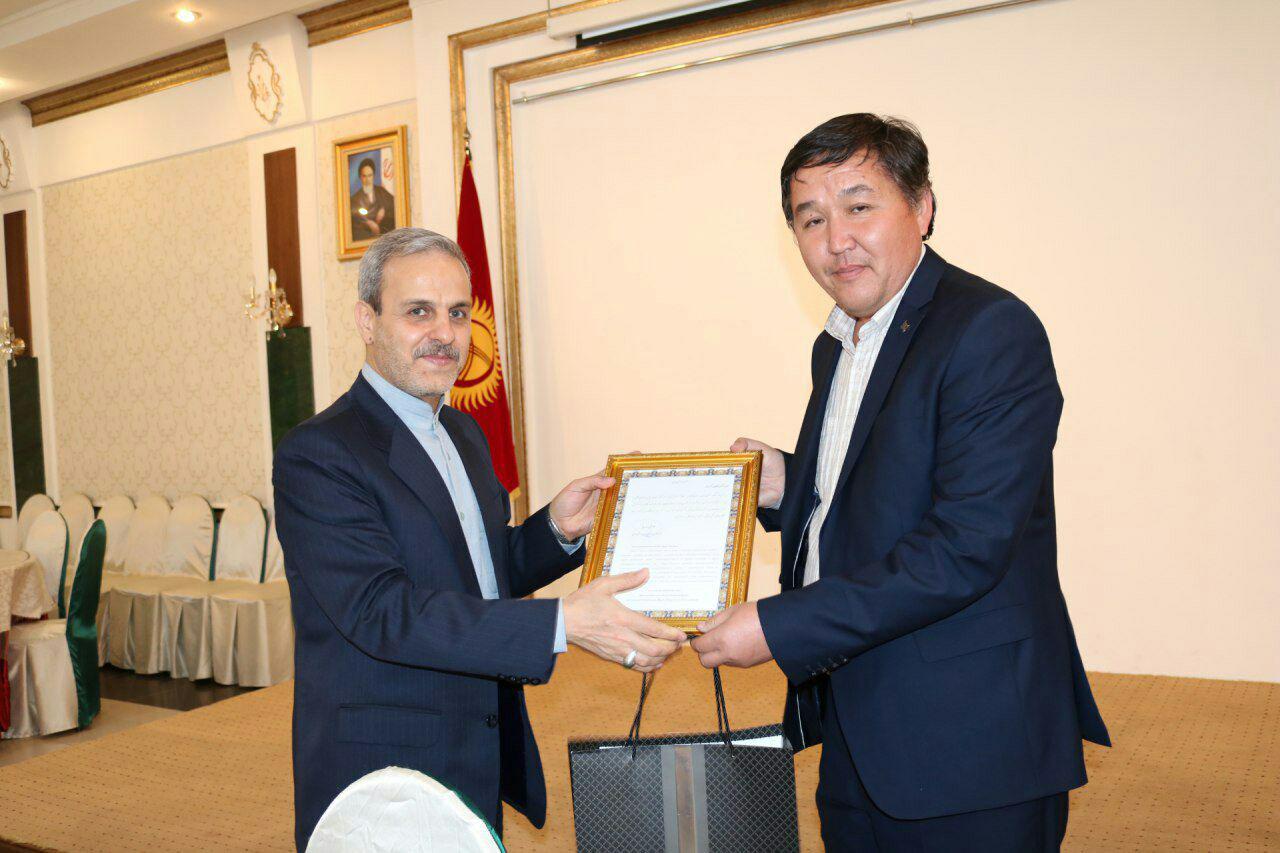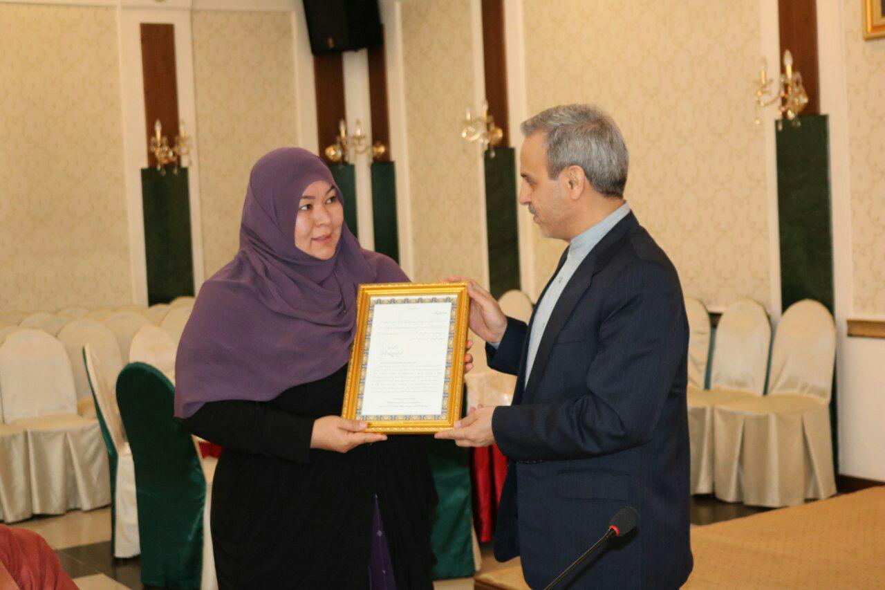 درپایان مراسم لوح تقدیر وهدایایی از طرف سفیر جمهوری اسلامی ایران در قرقیزستان به استادان ومدرسان زبان فارسی اعطا شد.