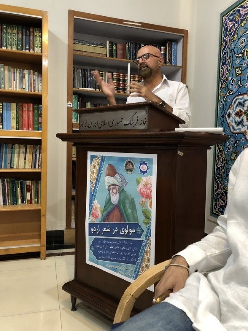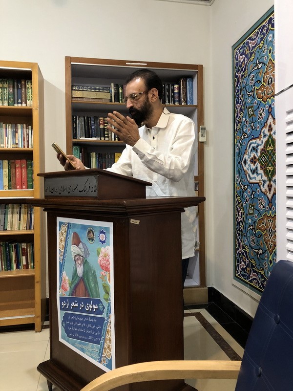 علی اکبر رضایی فرد رئیس خانه فرهنگ جمهوری اسلامی ایران در لاهور ضمن تبریک ایام بزرگداشت مولوی، با قرائت اشعاری از مولانا روم گفتههای خود را آغاز کرده و گفت: برای اینجانب بسیار جالب است وقتی که شما شاعران و اهل ادب شعر به اردو می گویید، معانی و مفاهیم اشعار شما بسیار با احساس و لطیف هستند. کلمات بکار رفته در اشعار اردوی شما بسیار فراوان بوده و اتفاقا کلمات فارسی امروز است. تمامی کلمه های مرتبط با احساسات و عواطف و معانی در فارسی، در اشعار اردوی شما بکار رفته اند و این در حالی است که شاید شما از آن مطلع نباشید. دلیل این همه همبستگی این است که زبان فارسی و اردو از یک ریشه هستند. هیچ گاه نمی توان این دو زبان را از یکدیگر جدا کنیم.