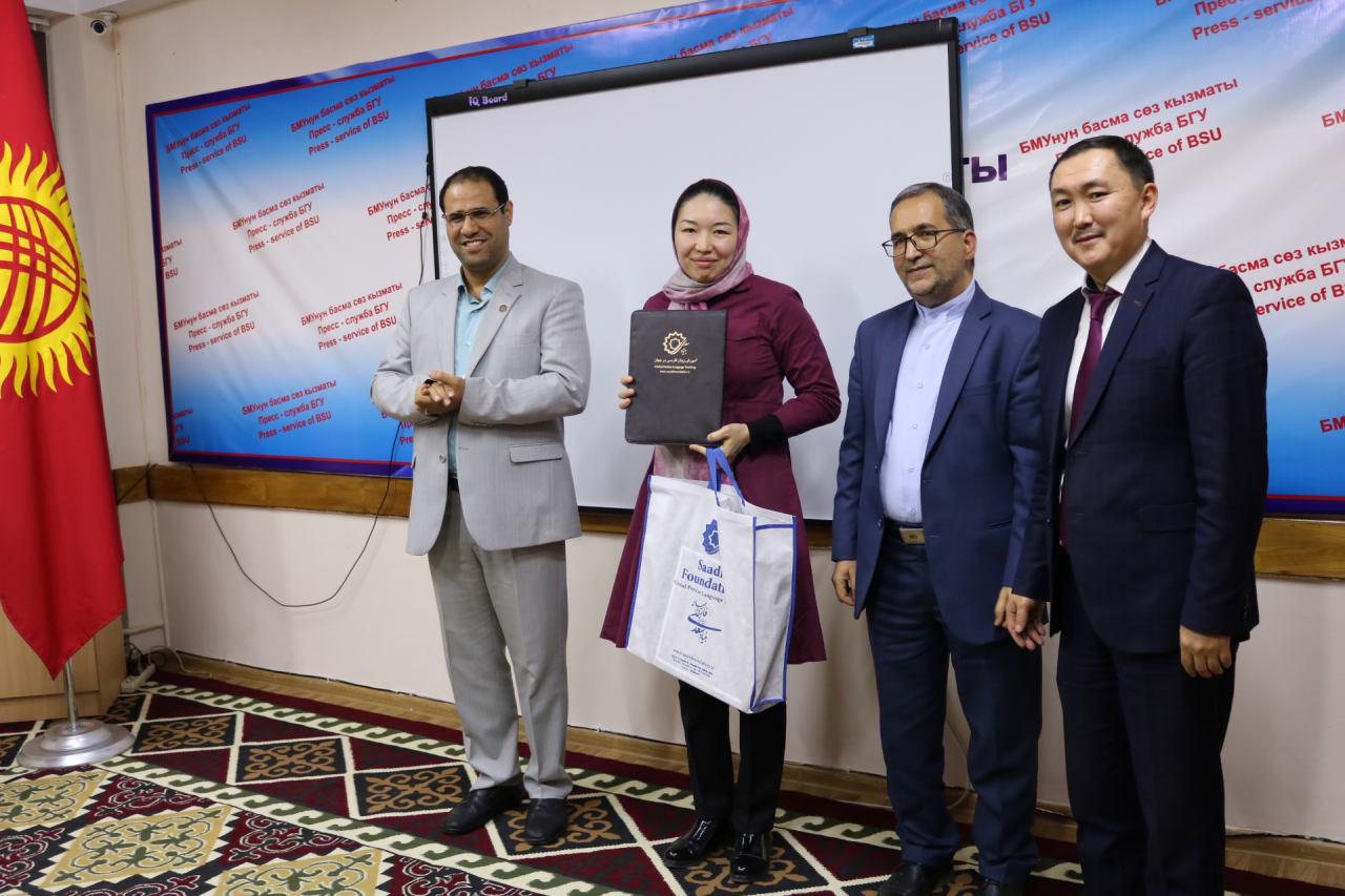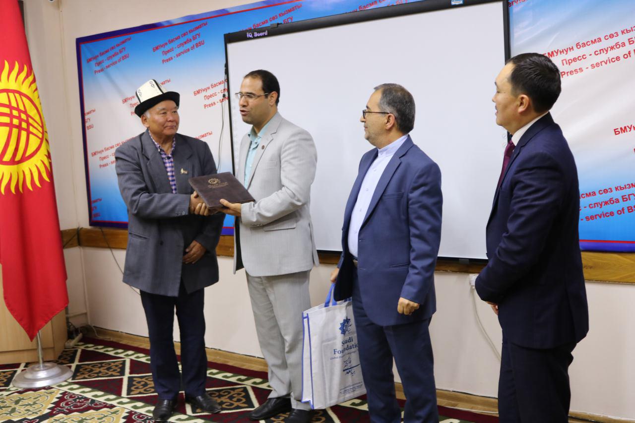 در پایان این مراسم ضمن تقدیر از فعالان حوزه زبان و ادبیات فارسی در قرقیزستان جوایزی از سوی بنیاد سعدی به آنها اهداء شد.