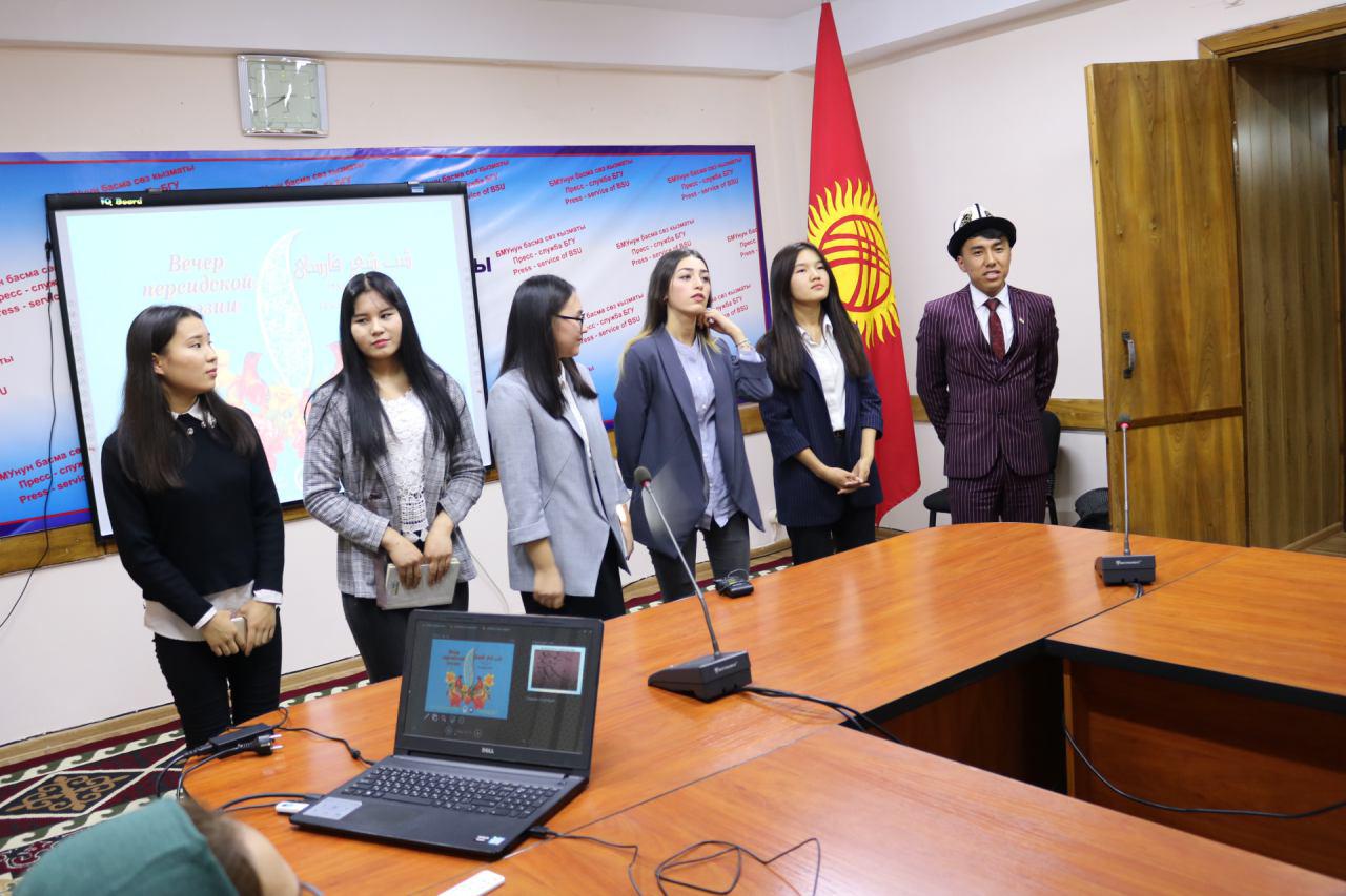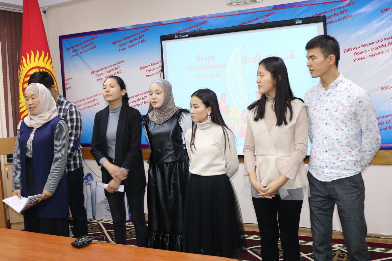 در آستانه جشن چهل سالگی دانشگاه دولتی بیشکک، «شب شعر فارسی» با حضور رایزن فرهنگی جمهوری اسلامی ایران در بیشکک، معاون آموزش و پژوهش بنیاد سعدی و استادان و دانشجویان ایرانشناسی و زبان فارسی و علاقمندان به فرهنگ ایرانی در محل دانشگاه دولتی بیشکک برگزار شد.