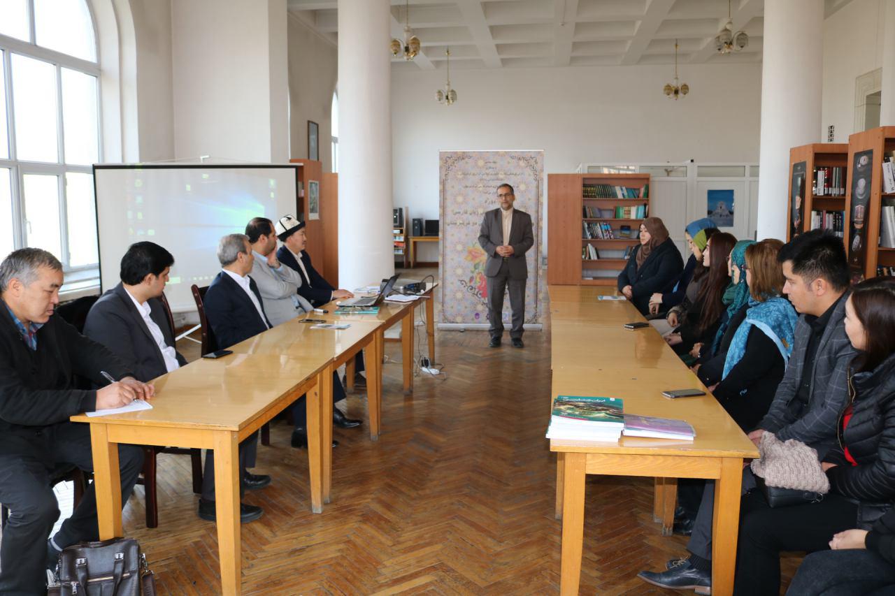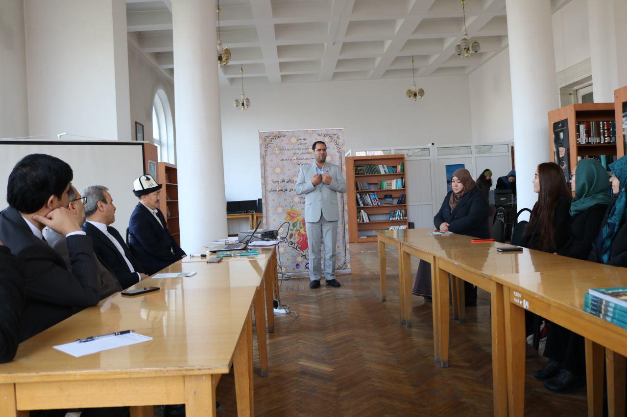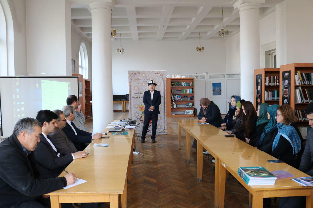 مراسم رسمی اختتامیه اولین دوره بازآموزی مدرسان زبان فارسی ویژه استادان زبان فارسی قرقیزستان با حضور سفیر و رایزن فرهنگی جمهوری اسلامی ایران و همچنین معاون آموزش و پژوهش بنیاد سعدی در مرکز ایرانشناسی فردوسی کتابخانه ملی قرقیزستان برگزار شد.