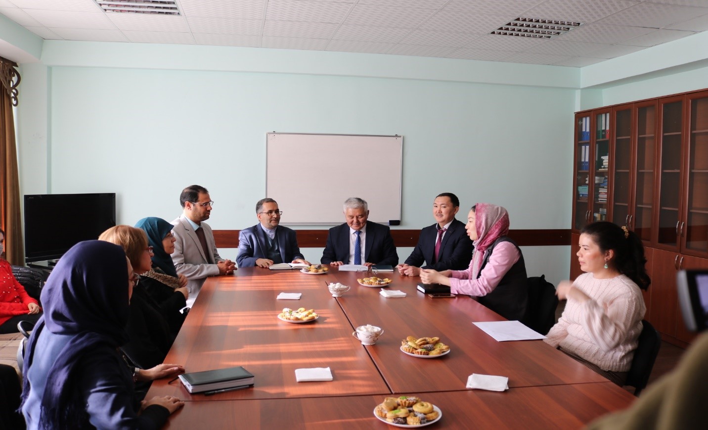 - دیدار با درست قاضویف معاون آموزشی و پژوهشی دانشگاه دولتی بیشکک و بررسی روابط و همکاری های علمی- آموزشی بین دانشگاه دولتی بیشکک با دانشگاههای ایران از جمله دانشگاه علامه طباطبایی و پیشنهاد دکتر رضامراد صحرایی برای اعطای بورس نوع A1 به دو نفر از دانشجویان زبان فارسی قرقیزستان و اعلام آمادگی برای اختصاص دوره کوتاه مدت دانش افزایی زبان فارسی برای دانشجویان زبان فارسی قرقیزستان؛