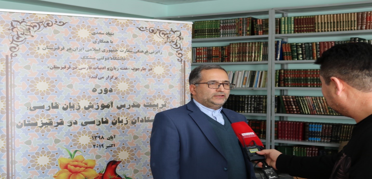 - برگزاری دوره بازآموزی مدرسان زبان فارسی ویژه استادان زبان فارسی قرقیزستان در دانشگاه دولتی بیشکک و اختتامیه آن در روز شنبه 26/8/98 در مرکز ایرانشناسی فردوسی کتابخانه ملی قرقیزستان همراه با اعطای گواهینامه شرکت کنندگان
