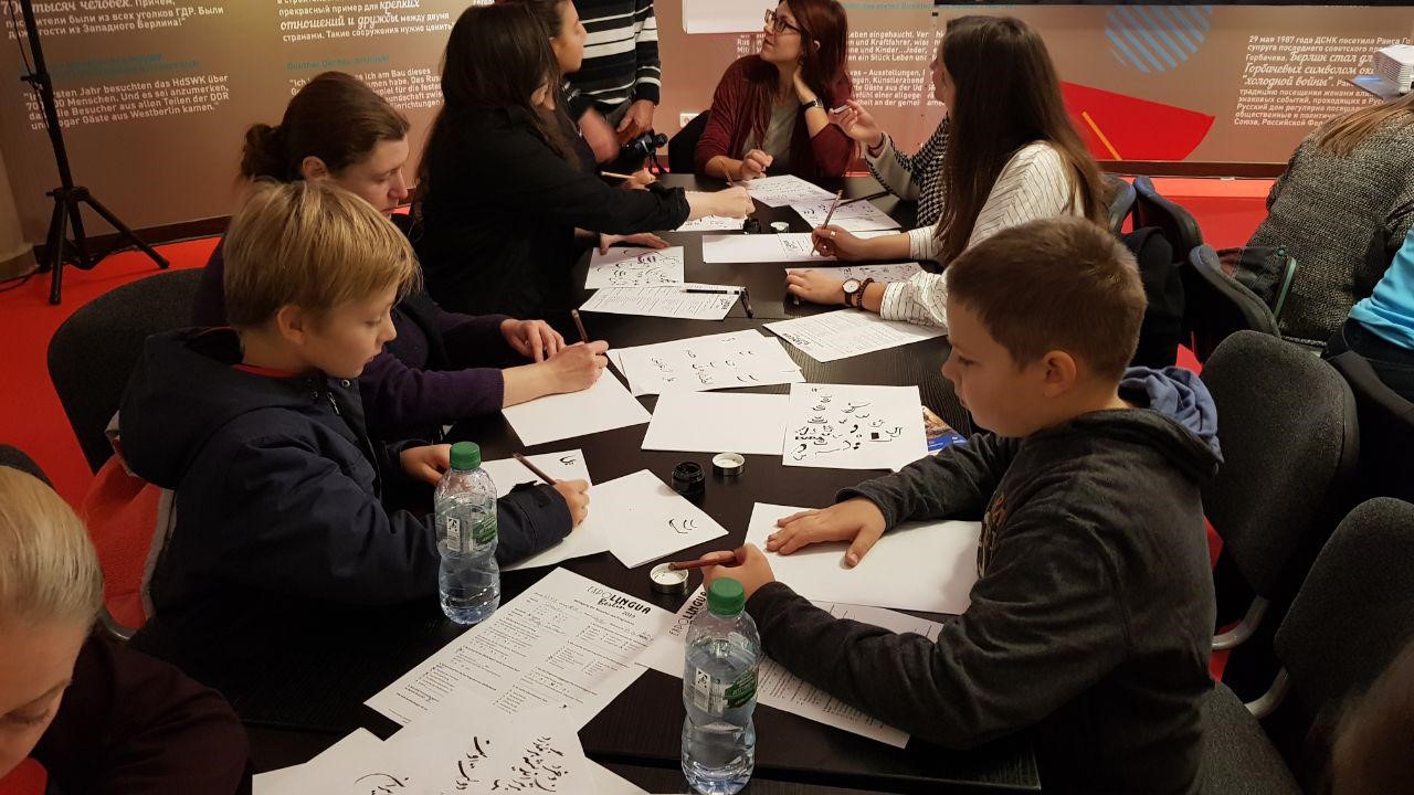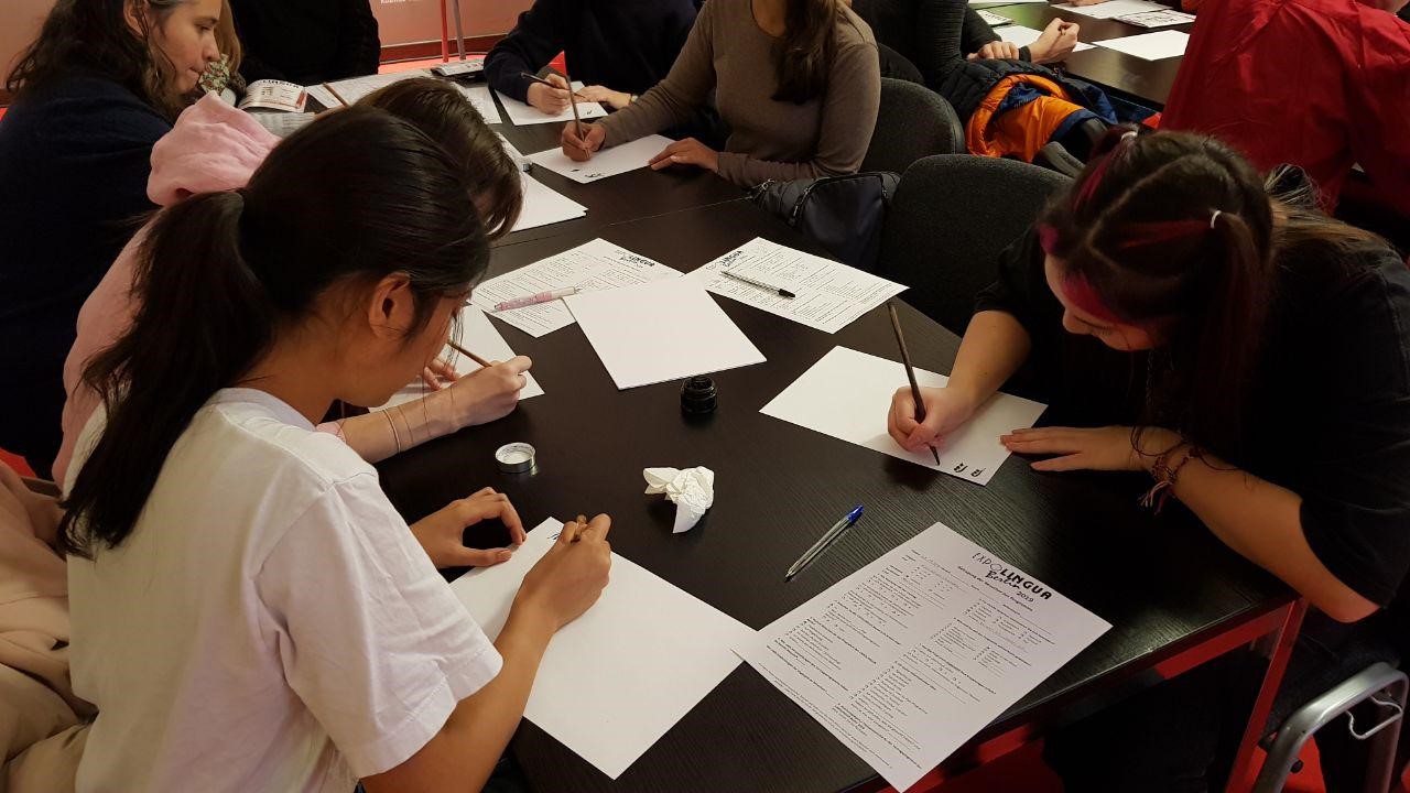 در بخش دوم نیز حاضرین در کارگاه، که از دانش آموزان ابتدایی، دانشجویان و معلمان علاقمند به زبان و خط فارسی بودند با قلم و دوات و سرمشقی که در پیش رویشان بود، به تمرین و مشق خط زیبای فارسی پرداختند.