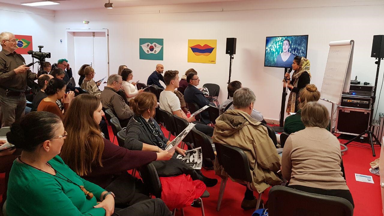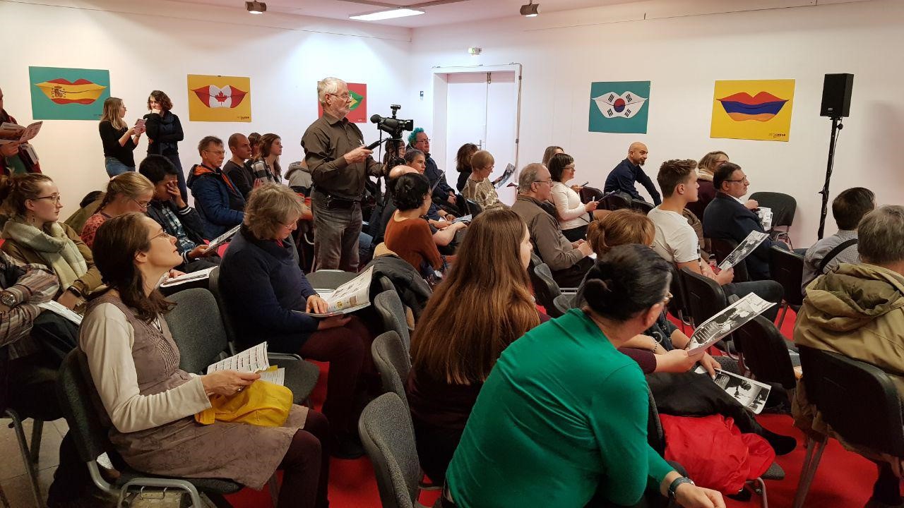 جمع حاضر در کارگاه که برخی با مقدمات زبان فارسی آشنا بودند و برخی کنجکاوانه برای آشنایی با این زبان شیرین گرد هم جمع شده بودن، بسیار مشتاقانه مربی کارگاه را در تکرار جملات کوتاه فارسی همراهی می کردند.