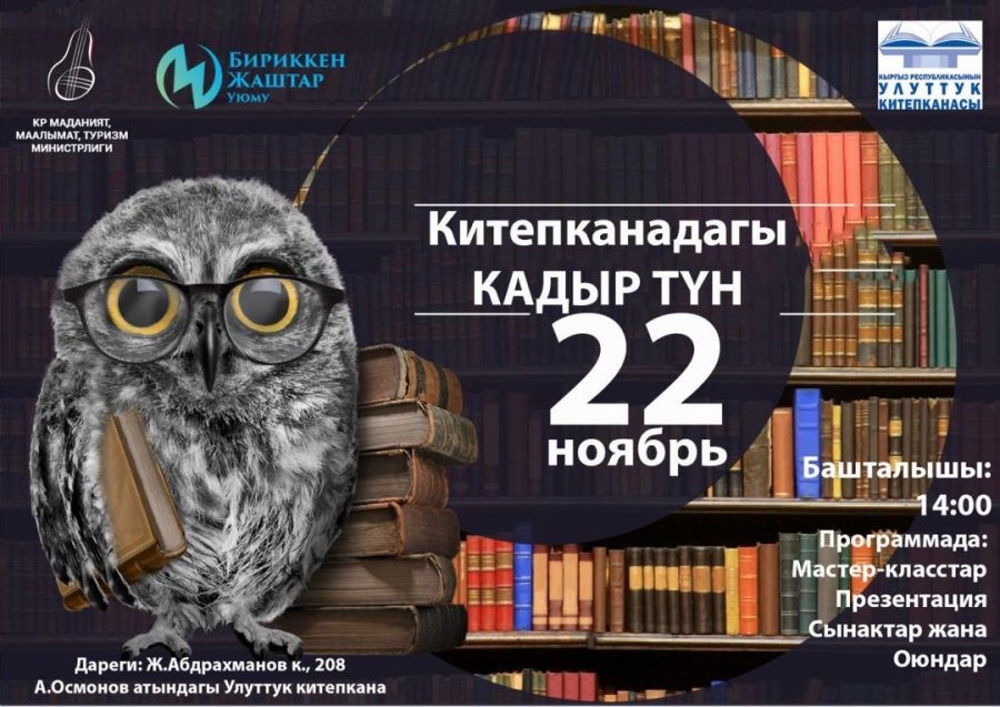 به مناسبت اولین هفته زبان و ادبیات فارسی در قرقیزستان و هفته کتاب در ایران کتابخانه ملی قرقیزستان مراسم سالانه خود را با عنوان "شبی با کتاب" در بیشکک با موضوع"کتاب و کتابخوانی در عصر دیجیتال" برگزار کرد.