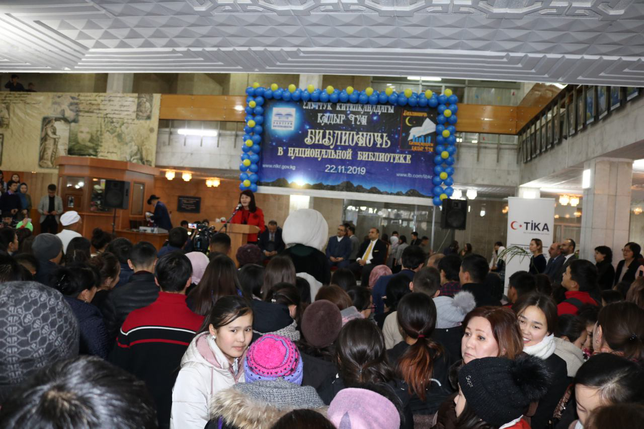 در افتتاحیه مراسم شبی با کتاب-بیشکک 2019 و نمایشگاه کتاب کشورمان، جیلدیز باگاشیوا رئیس کتابخانه ملی قرقیزستان از تمام شرکت کنندگان سپاسگزاری کرد و باختصار به تببین نقش کتاب و هدف از برگزاری چنین مراسمی در عصر دیجیتال پرداخت.