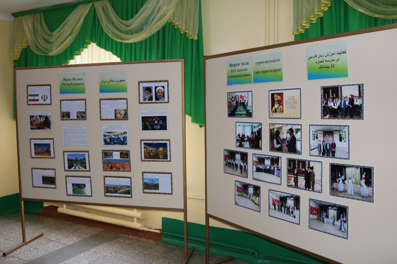 دانشآموزان زبان فارسی این مدرسه به اجرای برنامههای مختلف هنری، نمایش تئاتر، خواندن اشعاری از شاعران ایرانی و قرقیزی و سرودههای فارسی پرداختند.