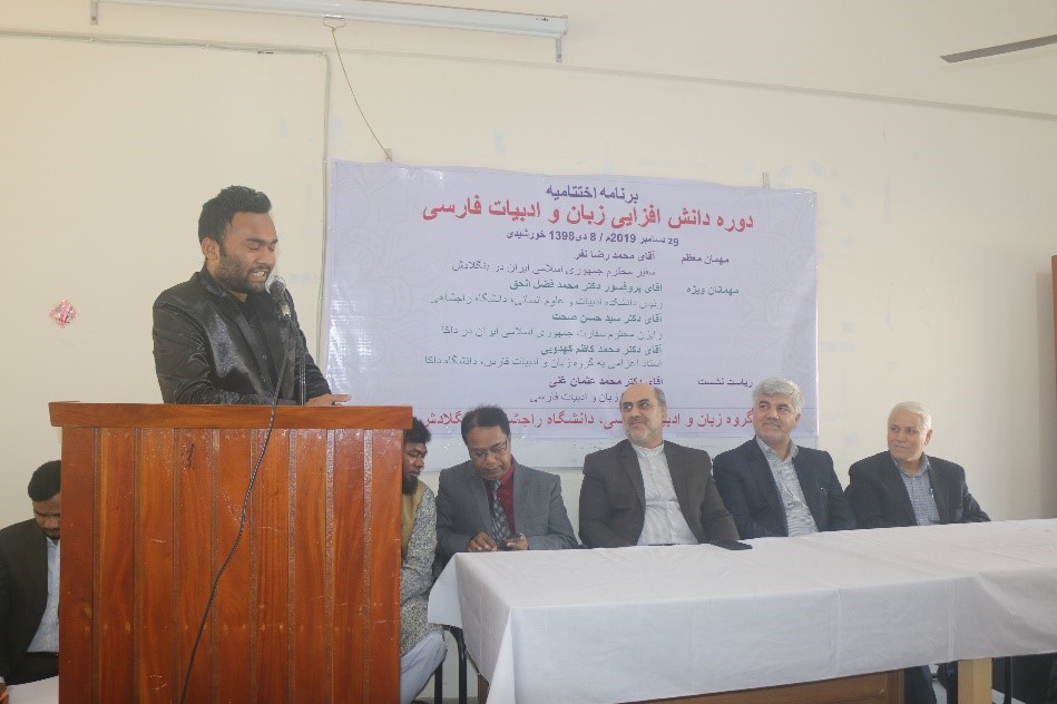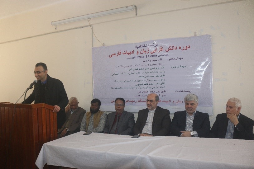 در مراسم پایانی این دوره به برگزیدگان و شرکتکنندگان گواهی آموزشی شرکت در دوره اعطا شد و محمدرضا نفر، سفیر و سید حسن صحت، رایزن فرهنگی ایران در داکا و رییس دانشکده علوم انسانی و تنی چند از اساتید و دانشجویان سخنرانی کردند.