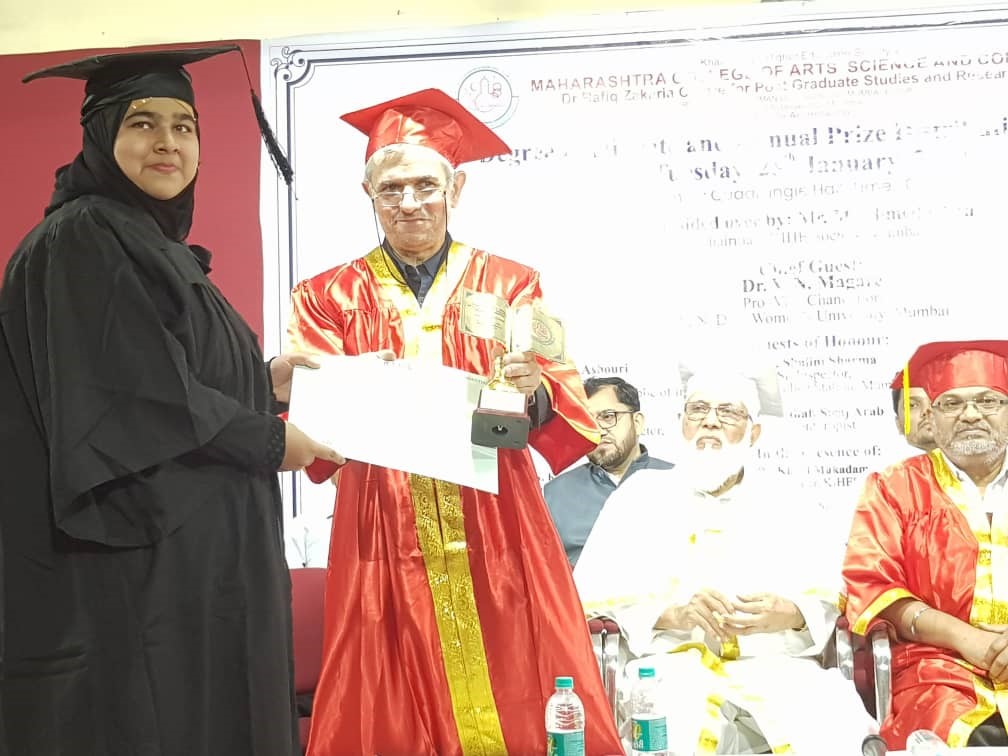 پس از آن مراسم اعطای مدارک به دانش آموختگان توسط آشوری وابسته فرهنگی ج.ا. ایران و مهمانان ویژه برگزار شد وسپس از نشریه جدید دانشکده مهاراشترا که به نام صدف می باشد رونمایی شد. بخشی از این نشریه شامل مجموعه فعالیت ها و برنامه ها دانشکده در سال ۲۰۱۹ میلادی می باشد. لازم به ذکر است که اکثریت دانشجویان دانشکده مذکور را جوانان مسلمان تشکیل می دهند.