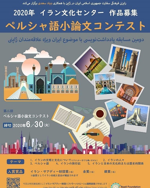 دومین مسابقه یادداشت نویسی اینترنتی با موضوع " ایران" از سوی رایزنی فرهنگی ایران در ژاپن و همکاری بنیاد سعدی ویژه مخاطبان و علاقه مندان ژاپنی و یا دو رگه های ایرانی و ژاپنی برگزار می شود.