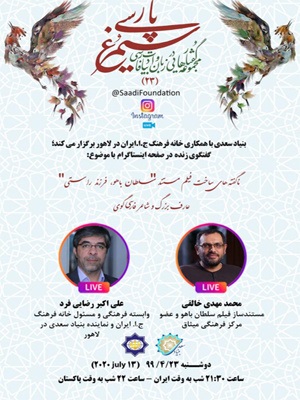 به همت خانه فرهنگ جمهوری اسلامی ایران در لاهور و بنیاد سعدی، نشستی فرهنگی با عنوان «ناگفتههای ساخت فیلم مستند سلطان باهو، فرزند راستی» در فضای مجازی (نرمافزار اینستاگرام) برگزار شد.