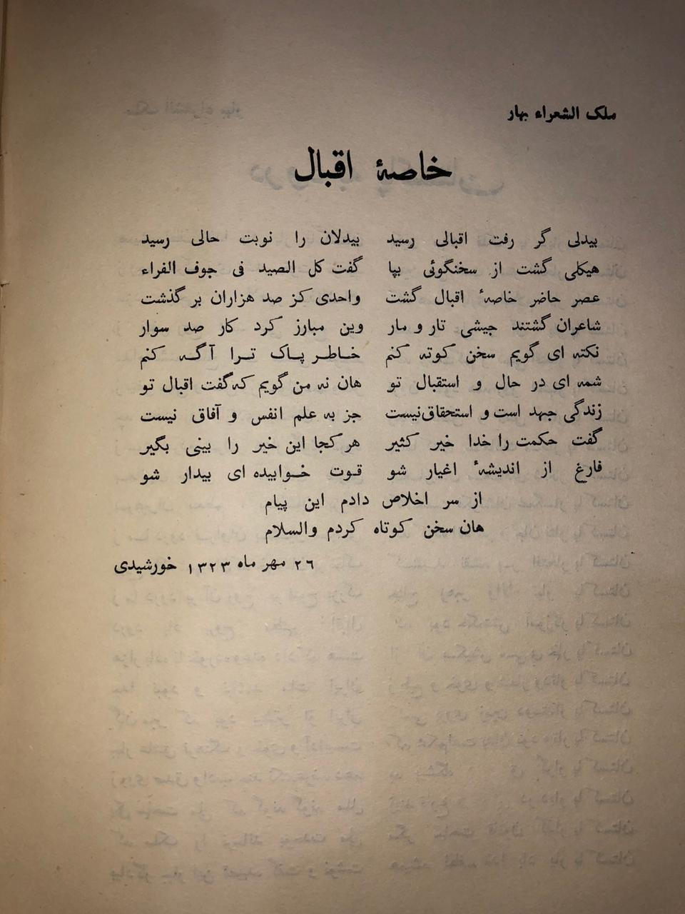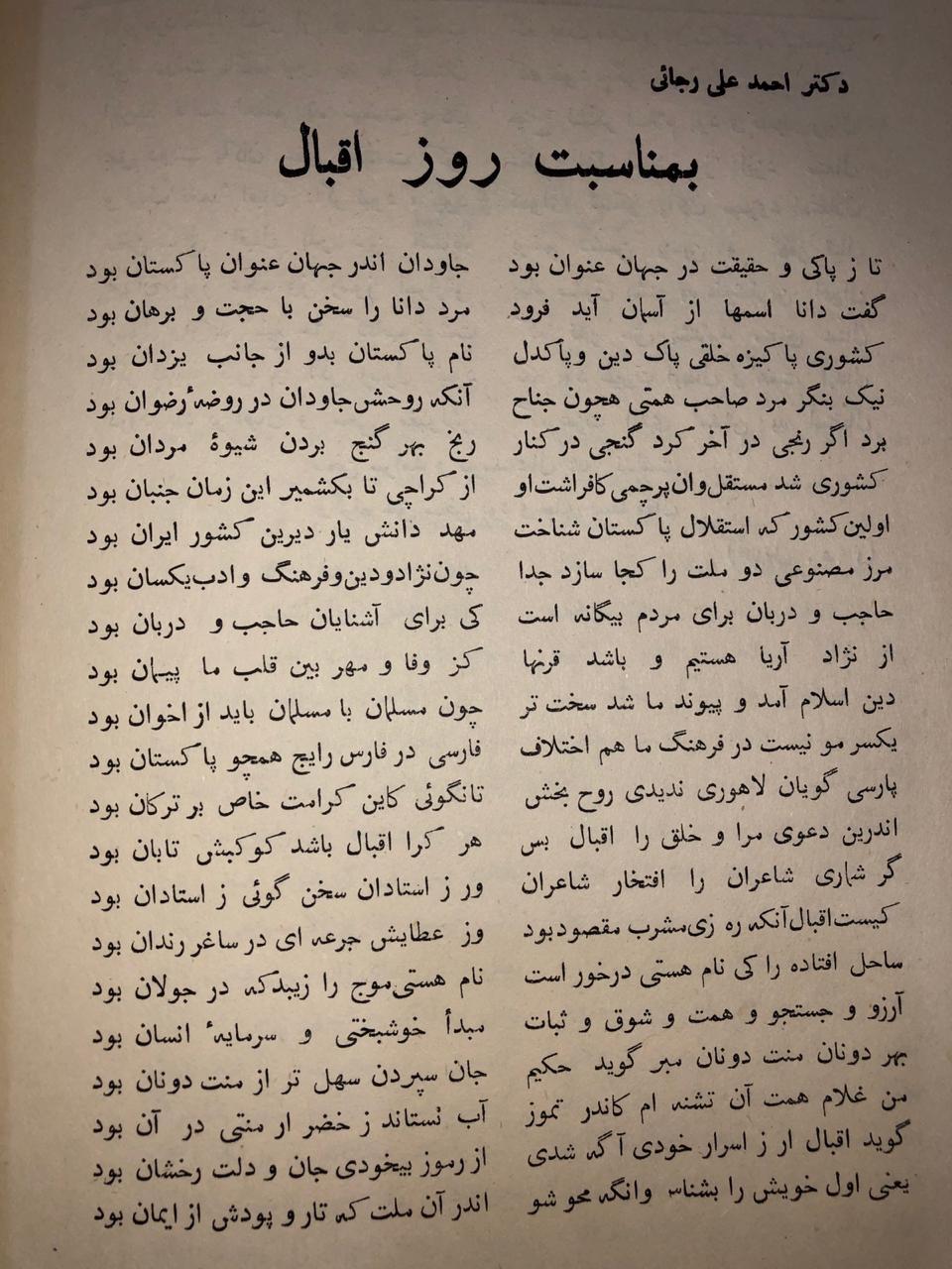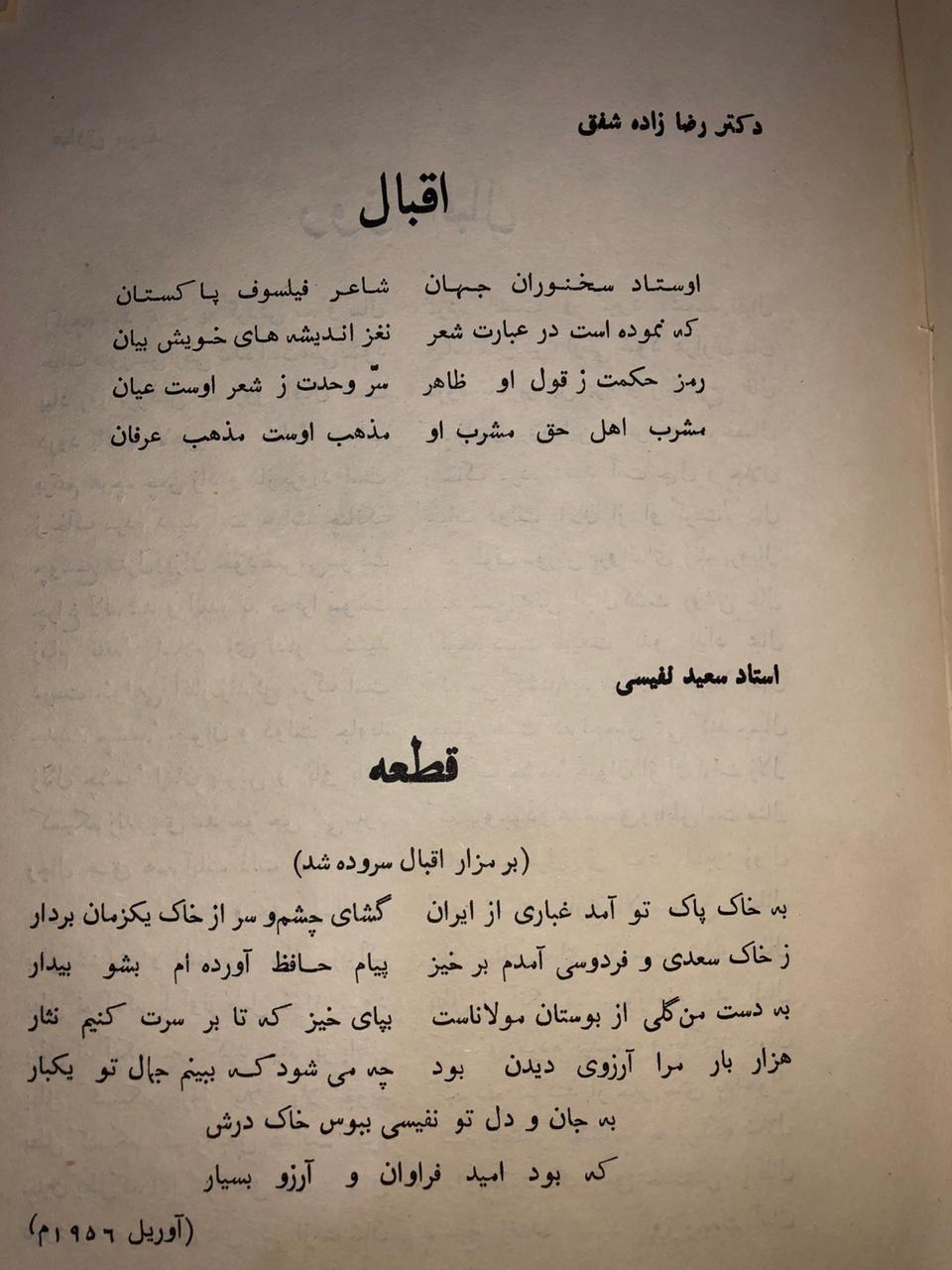 گفتنی است، پایاننامه علامه اقبال لاهوری، آخرین شاعر فارسی زبان شبه قاره راجع به فلسفه ایران بود و از این طریق هم با شخصیتهای ایرانی و فارسیزبان آشنا شد.