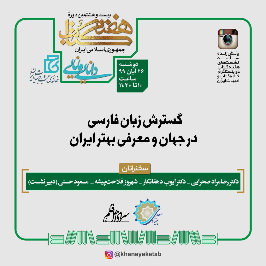 نشست مجازی «گسترش زبان فارسی در جهان و معرفی بهتر ایران» با حضور معاونان بنیاد سعدی به مناسبت هفته کتاب و کتابخوانی در صفحه اینستاگرام خانه کتاب و ادبیات ایران و بنیاد سعدی به صورت زنده پخش میشود.