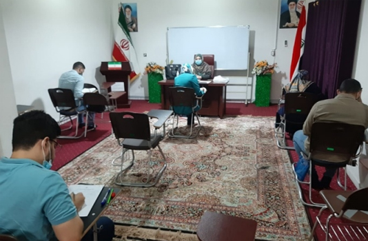 مرکز فرهنگی جمهوری اسلامی ایران در بغداد، آموزش فراگیران زبان فارسی را به صورت برخط و از طریق برنامه زوم میتینگ آغاز کرد. مدت این دوره متوسطه (جلد چهارم) ۴۰ ساعت، تعداد فراگیران ۱۲ نفر و استاد دوره نیز زینب مسلماوی بود، این آزمون دهم آبان ماه برگزارشد.