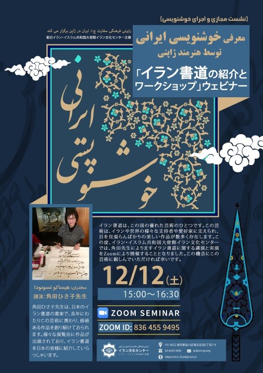 رایزن فرهنگی و نماینده بنیاد سعدی در ژاپن، به منظور معرفی هنر، فرهنگ و تمدن اسلامی، نشست مجازی و کارگاه آموزشی «معرفی هنر خوشنویسی ایرانی» را با حضور بیش از ۱۵۰ نفر از علاقهمندان ژاپنی برگزار کرد.