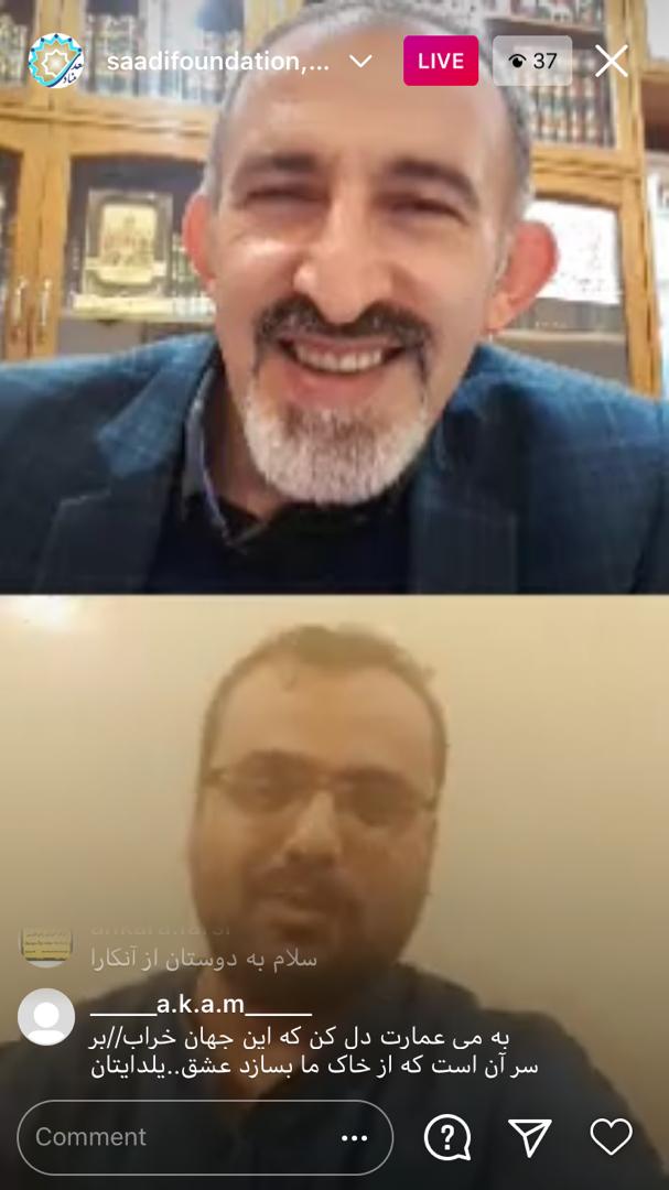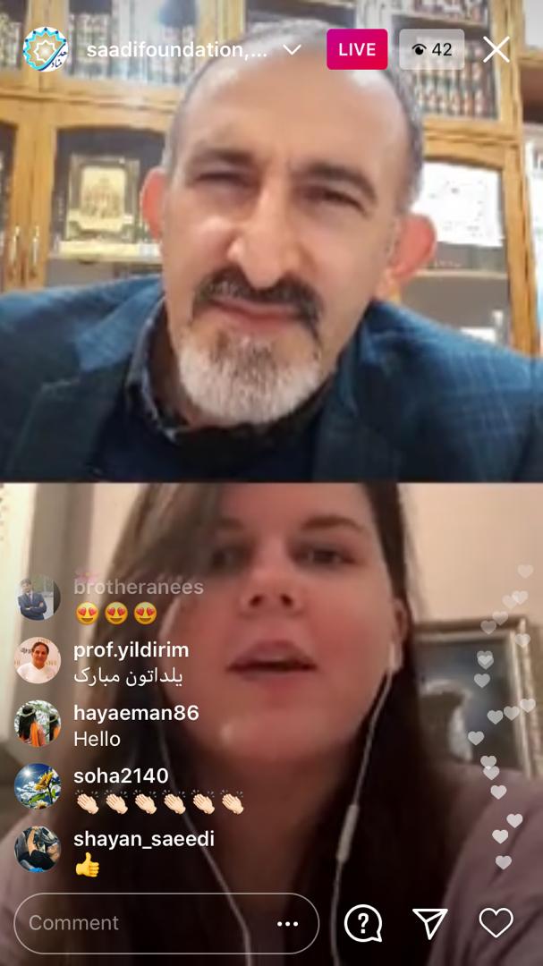 سمیرا یافتیان، مدیر روابط عمومی بنیاد سعدی نیز در پایان این گفت وگوها به فعالیت رایزنیهای فرهنگی ایران در سراسر جهان برای برپایی مراسم مجازی و یا حضوری شب یلدا جهت معرفی یکی از رسوم ایرانی اشاره کرد و گفت: با شیوع ویروس کرونا و دور شدن از مراسم های دسته جمعی، استفاده از فضای مجازی از جمله اینستاگرام فرصت دیدارها را فراهم کرده و بنیاد سعدی نیز در این حوزه بسیار فعال است.