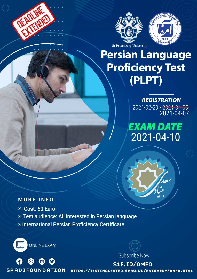 علاقهمندان به شرکت در این آزمون تا ساعت ۲۴ روز چهارشنبه ۱۸ فروردین سال جاری فرصت دارند با پرداخت ۵ میلیون ریال و مراجعه به آدرس http://S1f.ir/amfa ثبت نام کنند، برای کسب اطلاعات و راهنمایی بیشتر میتوانند با کارشناسان بنیاد سعدی به آدرس http://info@saadifoundation.ir