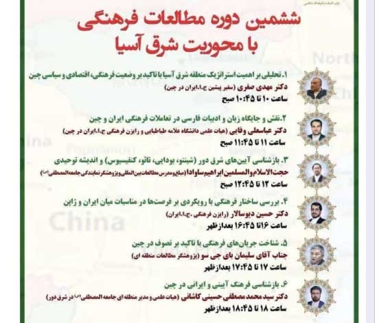 به گزارش روابط عمومی بنیاد سعدی، وبینار ششمین دوره مطالعات فرهنگی با تأکید بر شرق آسیا از سوی جامعةالمصطفی (ص) العالمیه با مشارکت قابل توجهی از مخاطبان ایرانی و خارجی برگزار شد.