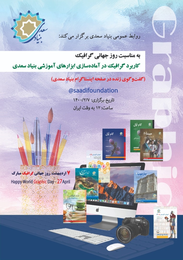 به مناسبت روز جهانی گرافیک در برنامه زنده اینستاگرامی، کارشناسان این حوزه به اهمیت گرافیک در تولید ابزارهای آموزشی بنیاد سعدی (کتاب، نرم افزار، لوح فشرده و…) پرداختند و به نقش گرافیک تخصصی در کتاب ها و دیگر محصولات نرم افزاری آموزش زبان دوم تاکید کردند.