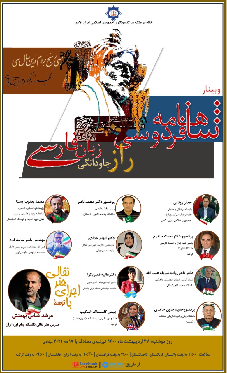خانه فرهنگ ایران در لاهور به مناسبت سالروز پاسداشت زبان فارسی و بزرگداشت فردوسی، وبینار «شاهنامه فردوسی، راز جاودانگی زبان فارسی» را ۲۷ اردیبهشت برگزار میکند.