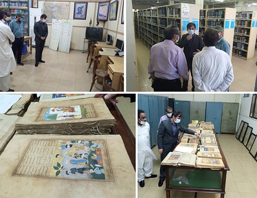 مسئول خانه فرهنگ کشورمان در لاهور از بخش نگهداری نسخ خطی که بیشتر کتابهای آن به زبان فارسی از جمله کتابهای قدیمی، شاهنامه، بوستان و گلستان سعدی و مثنوی معنوی بود، بازدید کرد.