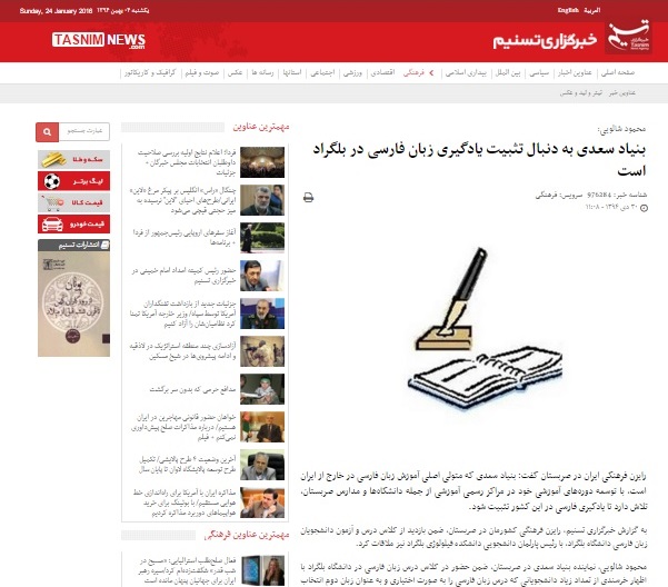 خبر «بنیاد سعدی به دنبال تثبیت یادگیری زبان فارسی در بلگراد» در برخی رسانه ها