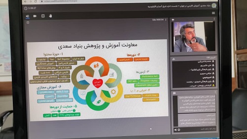در ادامه این نشست مجازی، معاون آموزش و پژوهش بنیاد به معرفی و آشنایی با آخرین دستاوردهای این معاونت در حوزه محتوا، آزمونها، دورهها و حمایت از آن و آموزش مجازی در حوزه آموزش زبان فارسی به صورت مفصل پرداخت و با توضیحات و معرفی آخرین دستاوردها جهت همکاری و هم افزایی بیشتر تأکید کرد.