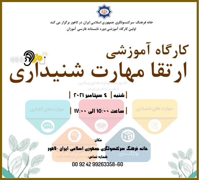 کارگاه آموزشی دوره تابستانه فارسی آموزان به منظور ارتقای مهارت های شنیداری شامگاه شنبه ۱۳ شهریور ۱۴۰۰ در لاهور پاکستان برگزار شد.