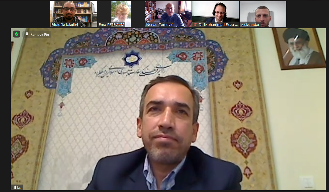 محمد بختیاری، سرپرست رایزنی فرهنگی کشورمان در این نشست، ضمن اشاره به امضاء تفاهم نامه همکاری های دانشگاه بلگراد با پایگاه استنادی علوم در شیراز، حمایت رایزنی فرهنگی و نمایندگی بنیاد سعدی از توسعه روابط دانشگاهی را مورد تاکید قرار داد و اظهار داشت «توجه به ارتقاء سطح کیفی آموزش زبان فارسی و ایرانشناسی و همچنین ایجاد زمینه های ارتباط استادان، دانشگاهیان و پژوهشگران صربستان با دانشگاهها و موسسات آموزش عالی ایران که بستر اصلی توسعه روابط علمی و فرهنگی است، بسیار حائز اهمیت است و مورد حمایت جدی ماست» وی ضرورت برپایی نشست ها و همایش های علمی را خاطر نشان کرد و پیشنهاد کرد تا همایش های علمی برخط در دستور کار گروهی قرار گیرد.